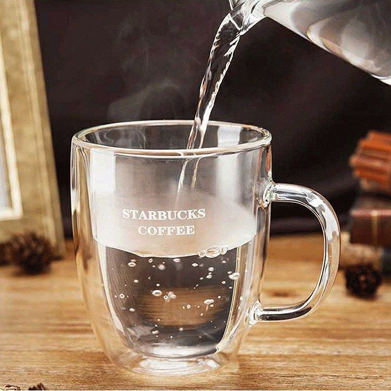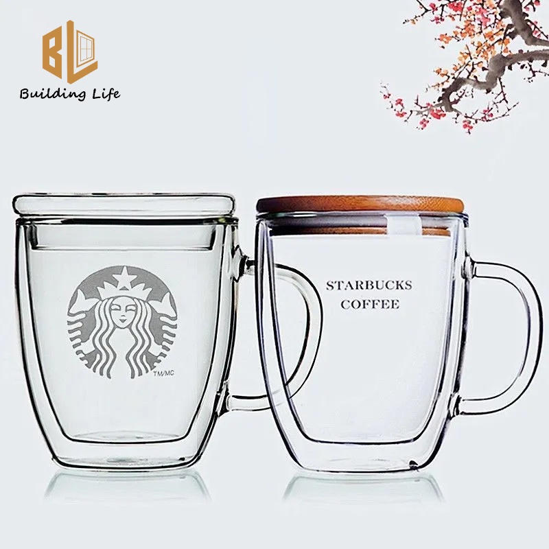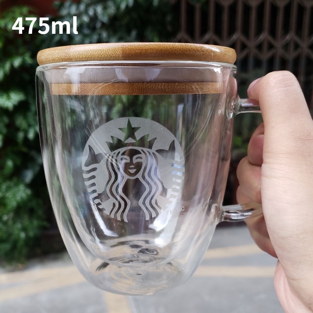 Starbucks Cốc Thủy Tinh Dày Hai Lớp Chịu Nhiệt Có Tay Cầm