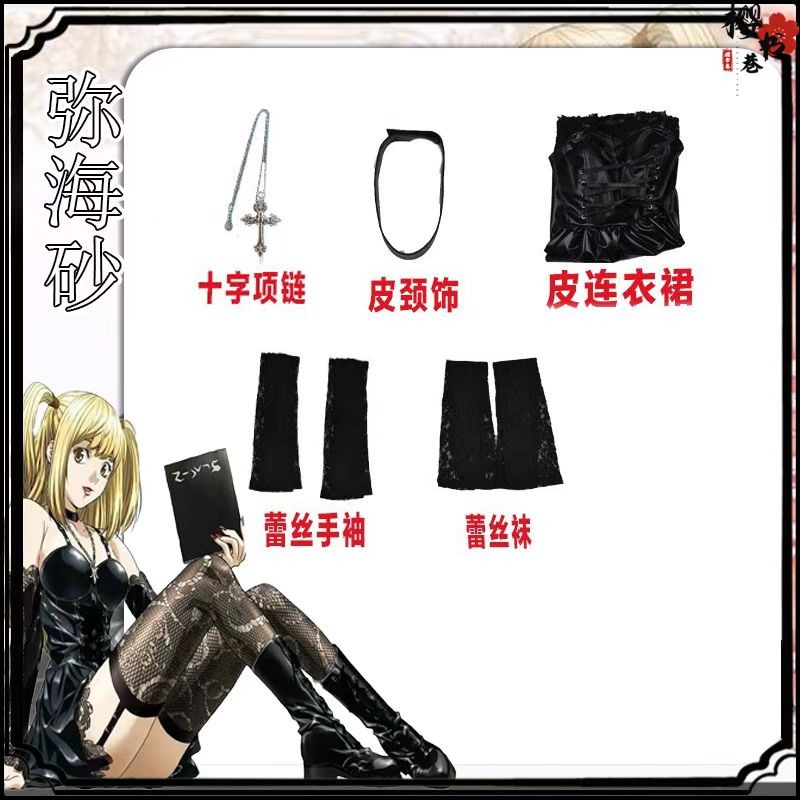 Death Note MisaMisa cosplay Costume plus size Misa Amane Imitation Leather Sexy Dress +Neck jewelry+stockings+necklace Uniform anime cos Outfits for women