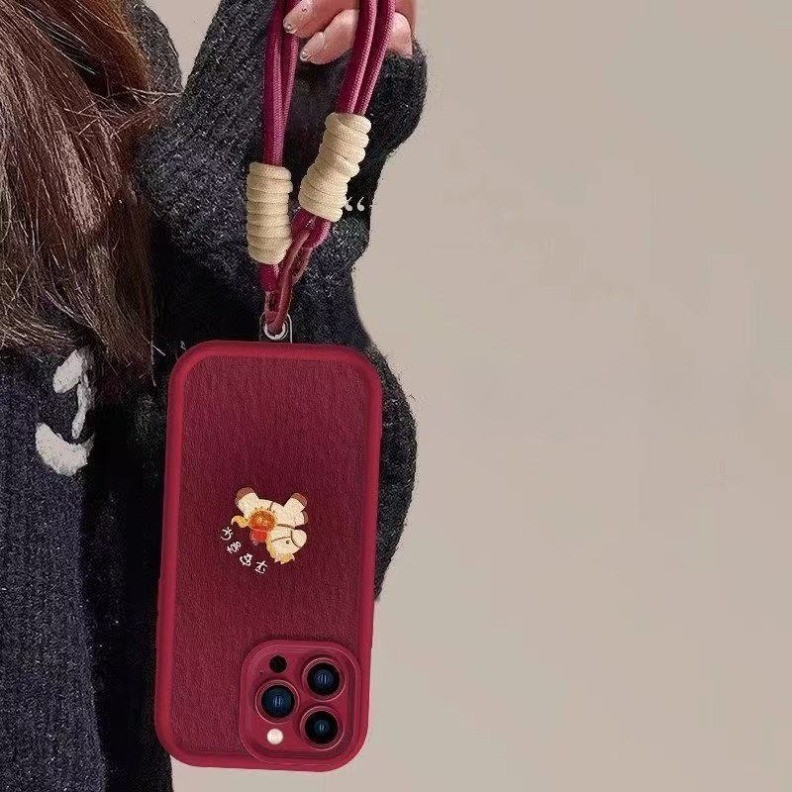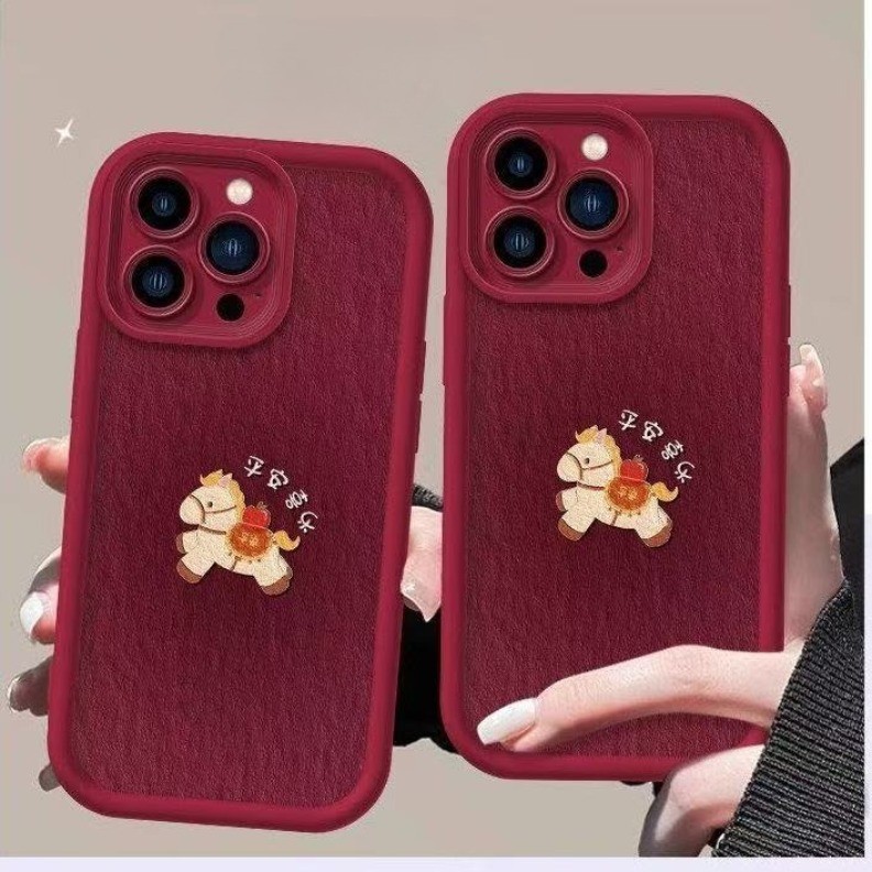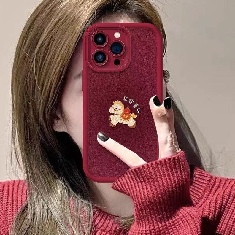 Dành Cho IPhone 17 16 15 14 13 12 11 Pro Max X XR Max 7 8 Plus Màu Đỏ Cô Gái Dễ Thương Năm Mới Pony Dây Điện Thoại Vỏ Mềm