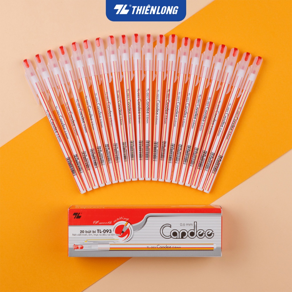 Combo 5/10/20 Bút bi Thiên Long Candee TL-093 ngòi 0.6mm - viết bi sọc có nắp đậy, trọng lượng nhẹ, viết êm trơn