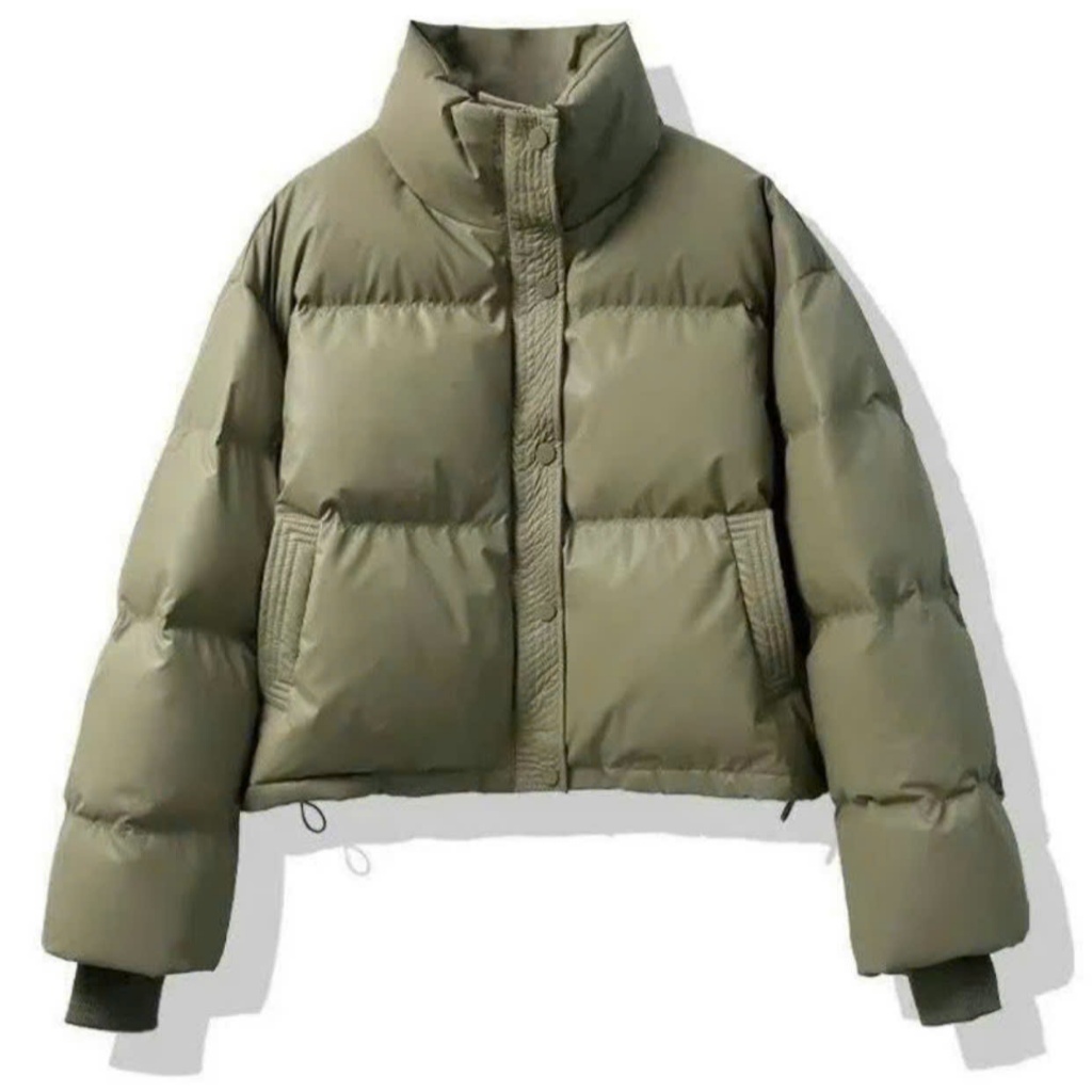 Áo Phao Nữ Dáng Ngắn Không Mũ Có Dây Rút Dưới Áo Phao Béo Nữ Chất Da Áo Khoác Phao Mùa Đông 4 Màu
