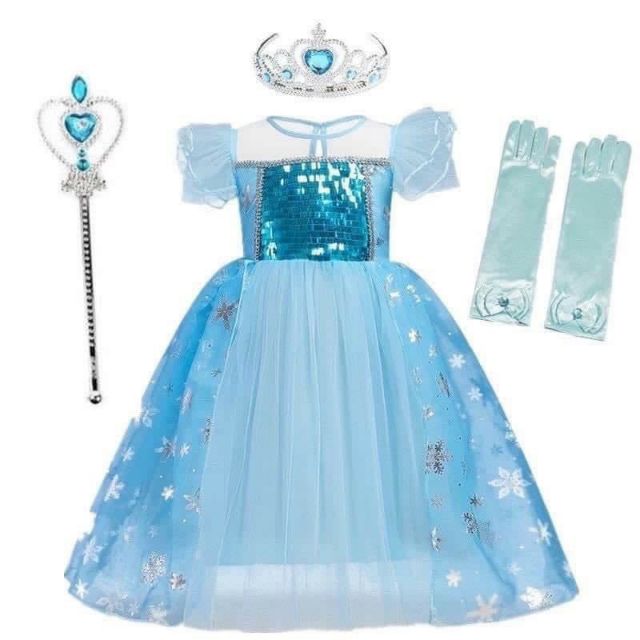 VÁY ELSA + VƯƠNG MIỆN + ĐŨA THẦN + GĂNG TAY CHO BÉ GÁI (8-32KG)