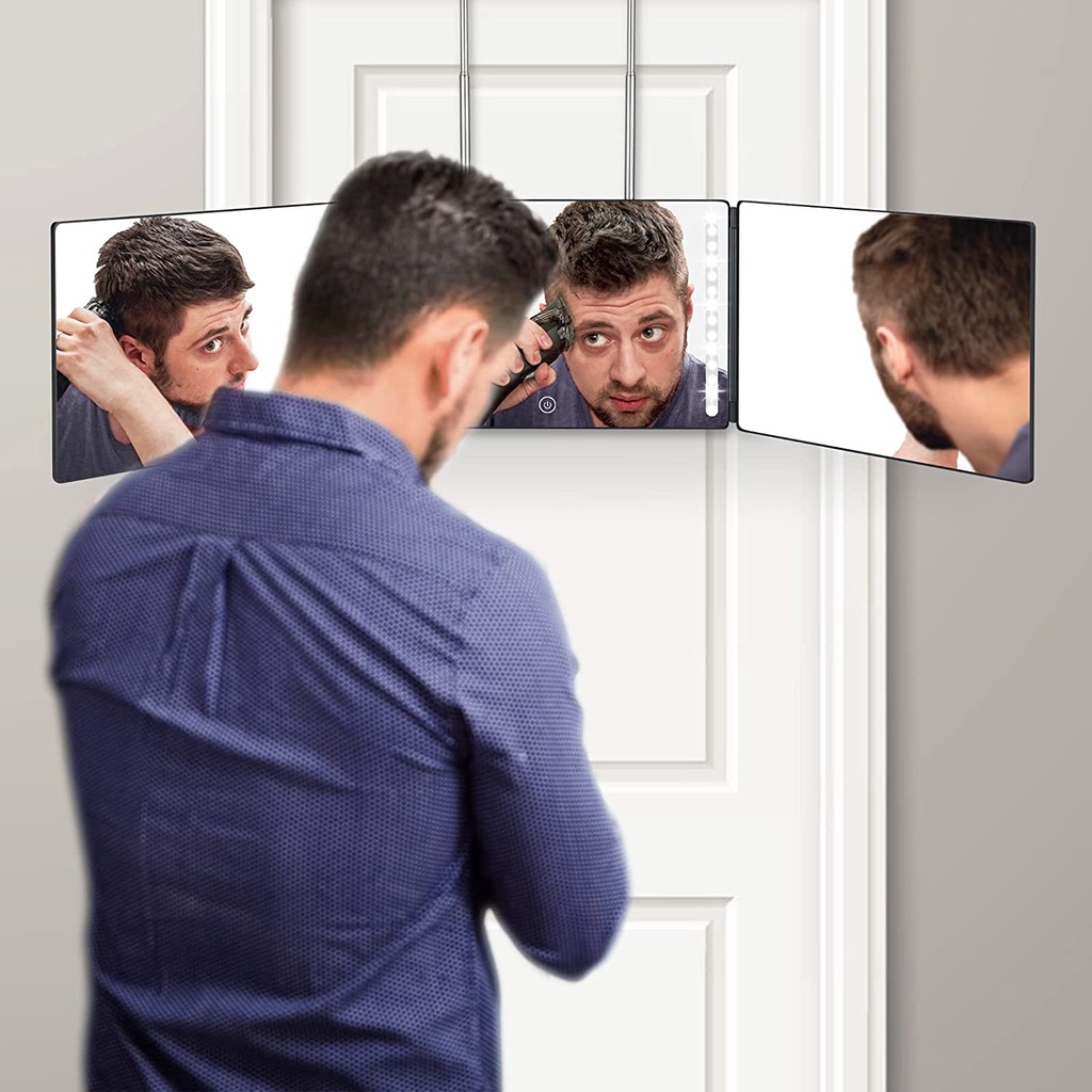Gương cắt tóc tự cắt bằng đèn LED, Gương trang điểm, Gương 360 để cắt tóc cho nam, Gương cắt tóc tự nhìn thấy mặt sau đầu
