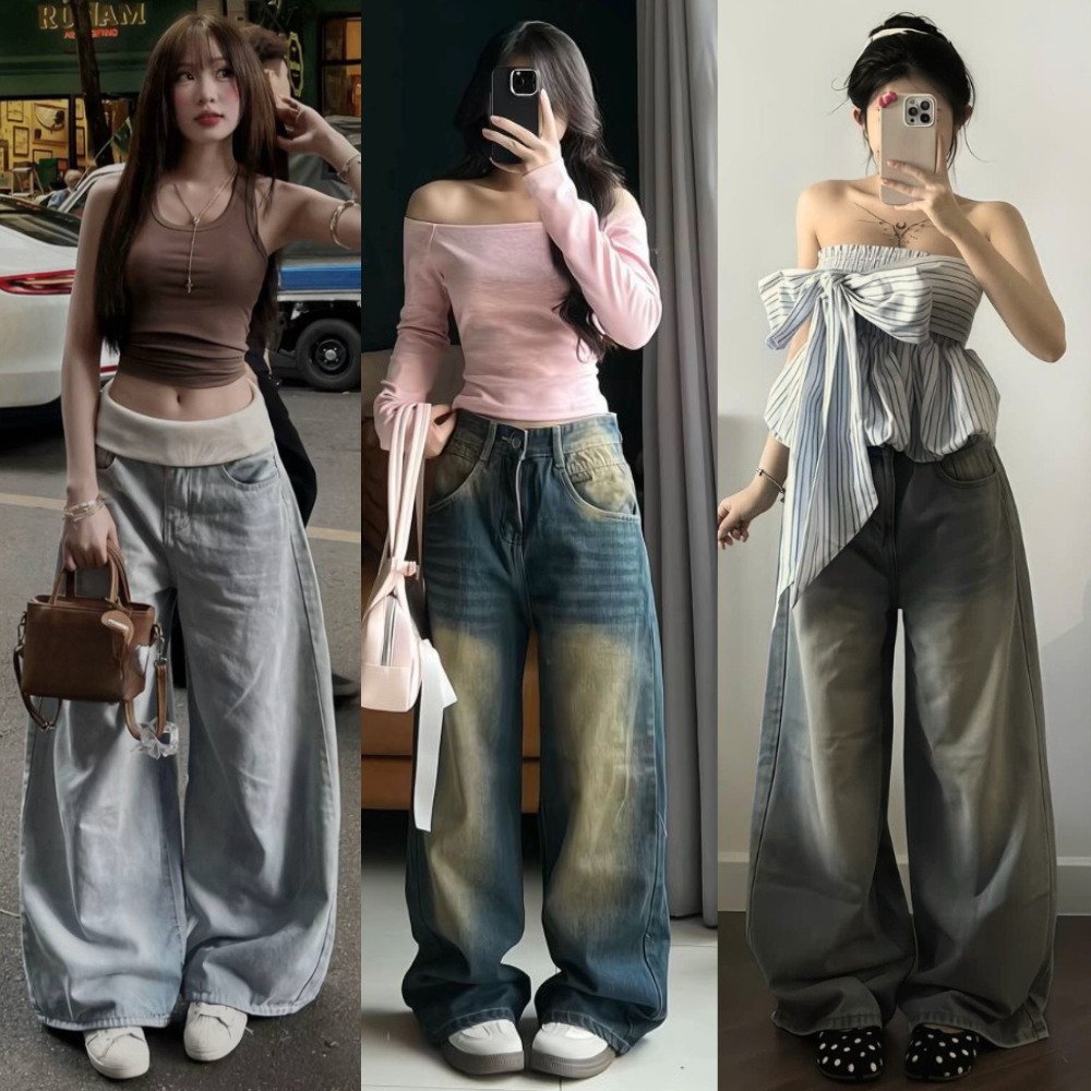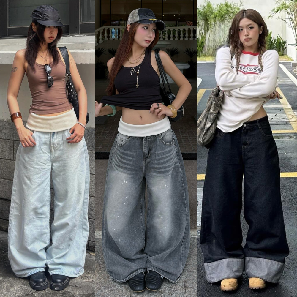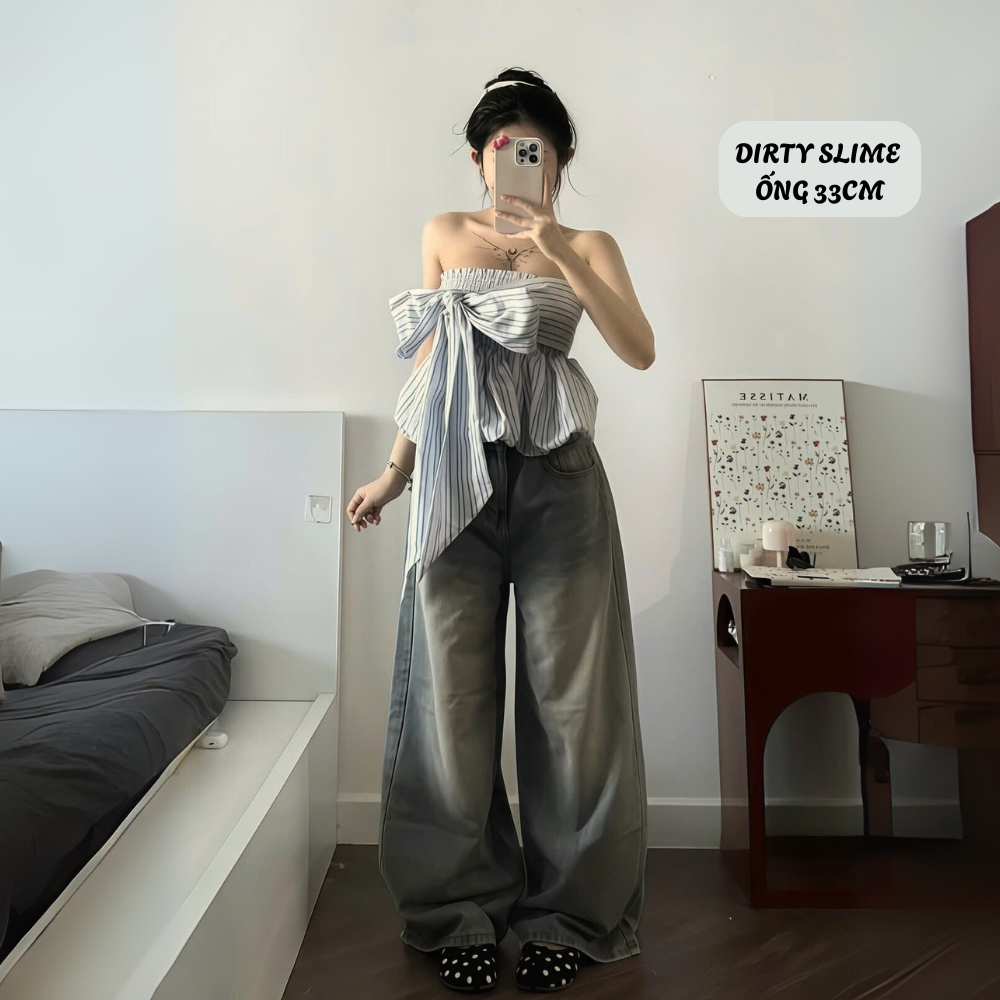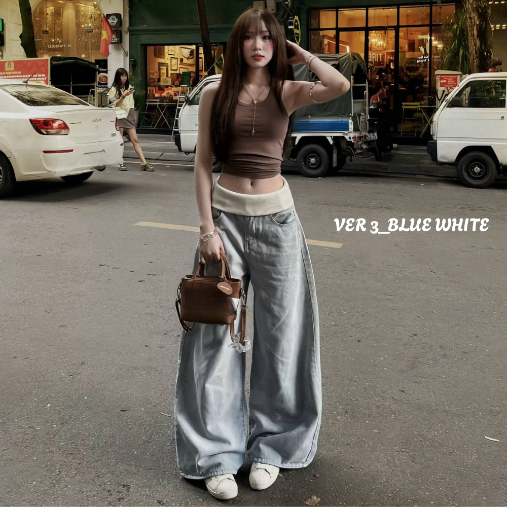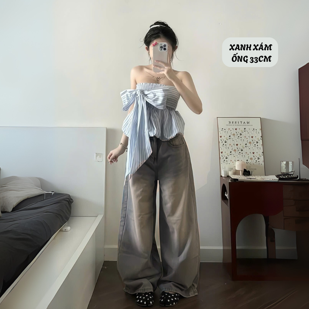 Quần jeans suông ống rộng, quần bò Wash dáng rộng cạp cao tôn dáng nam nữ ulzzang cá tính