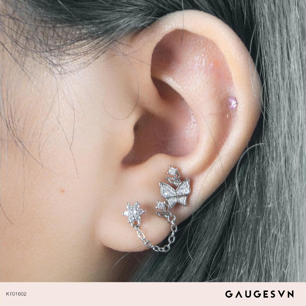 NOV Khuyên tai đôi flower-double butterfly đính đá trắng - NOV_KT01602