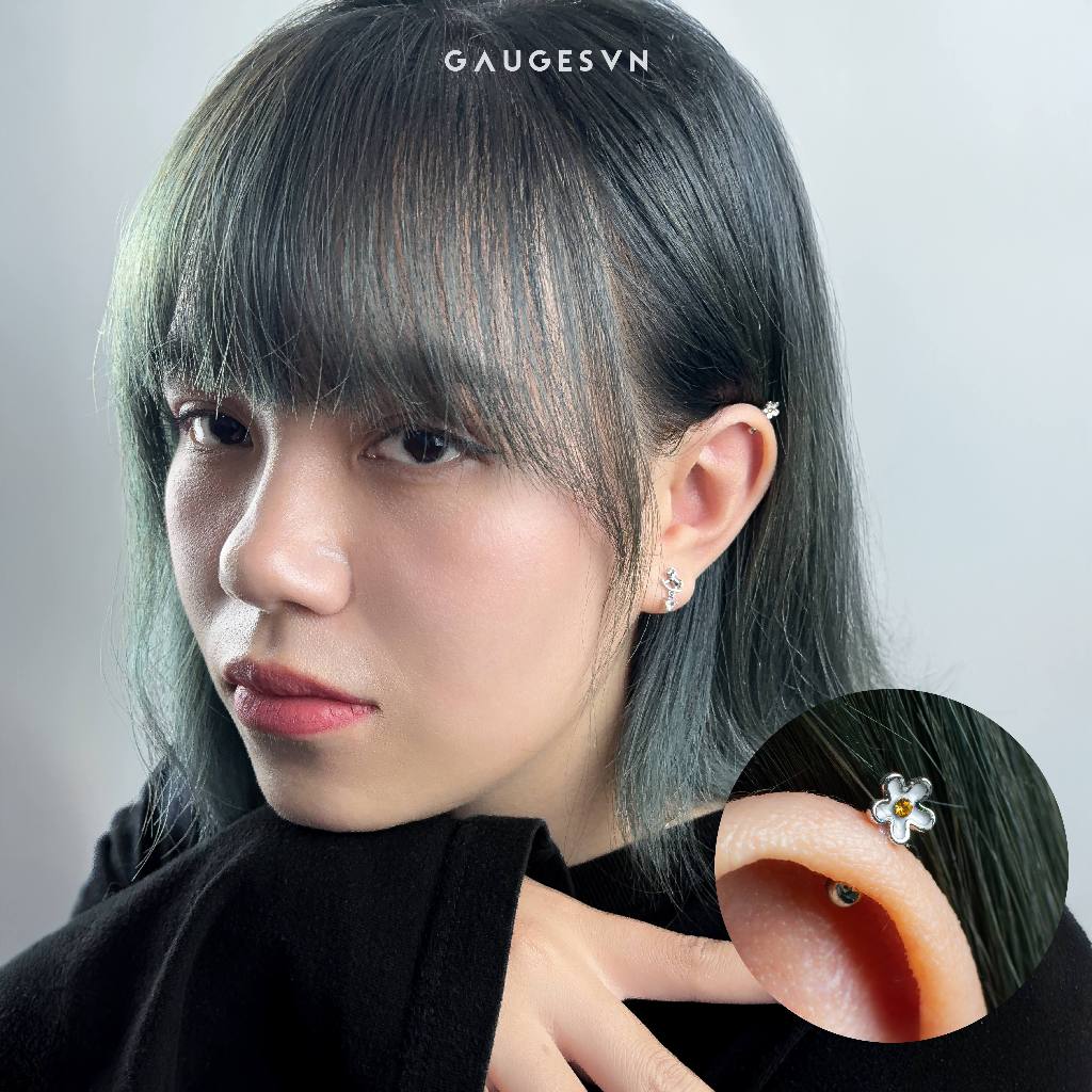 NOV Khuyên tai Vertical Helix hoa 5 cánh nhuỵ vàng - NOV_KT01591