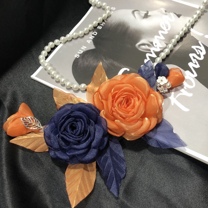 Hoa cài áo thủ công- Dây hoa kết hợp dài 18cm- Nhiều màu- Cài áo dài trơn, đầm trơn