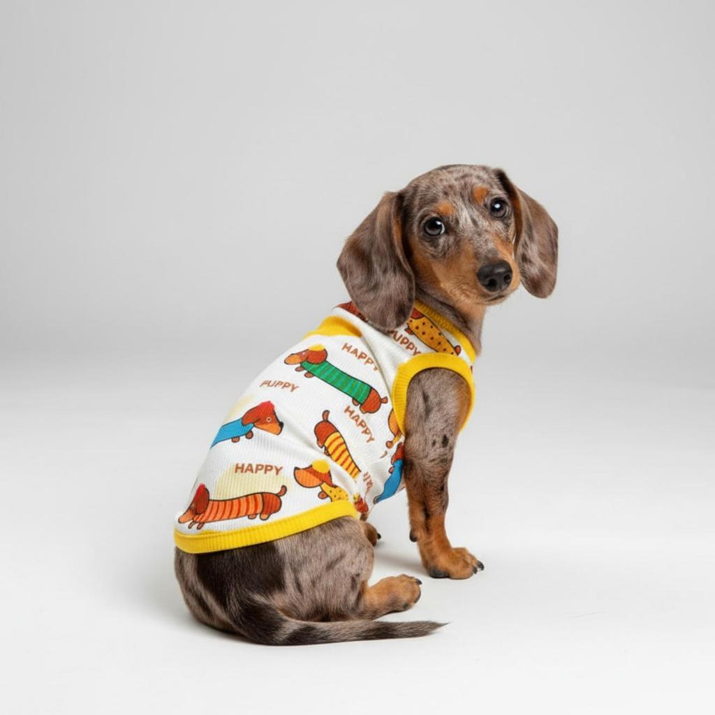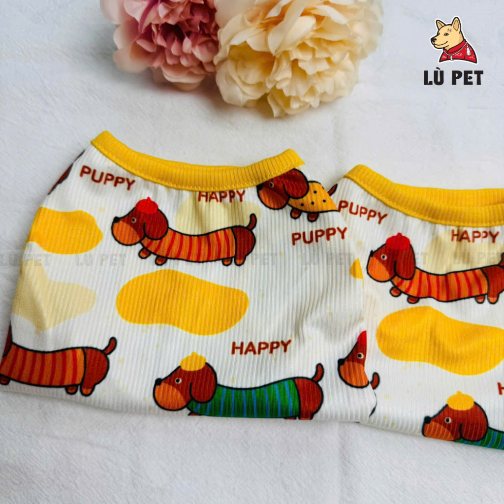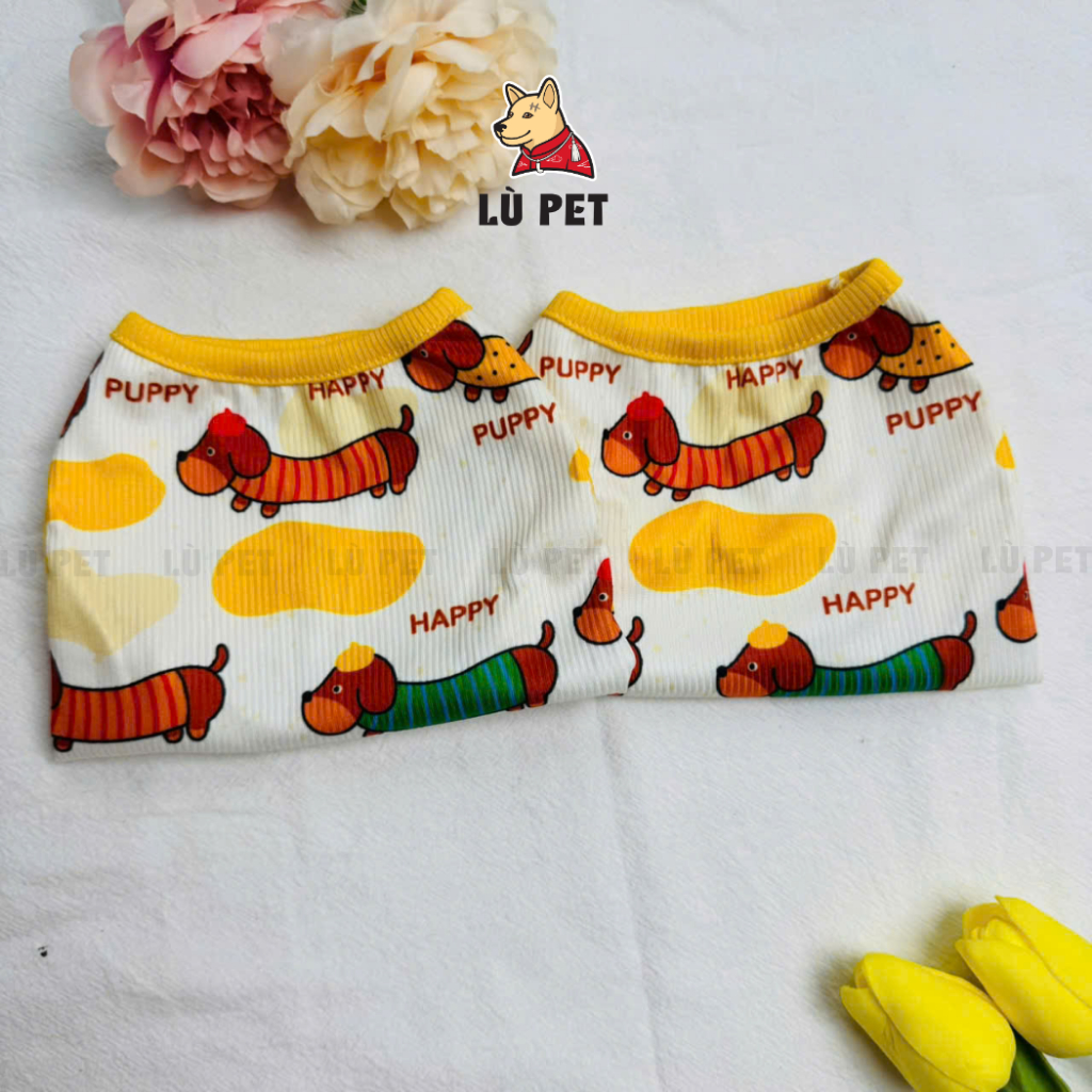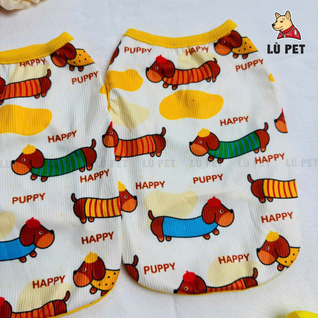 Áo Chó Mèo Từ 1 - 25Kg - Họa Tiết Cún Lạp Xưởng Đáng Yêu - Vai Thun Gân 4 Chiều