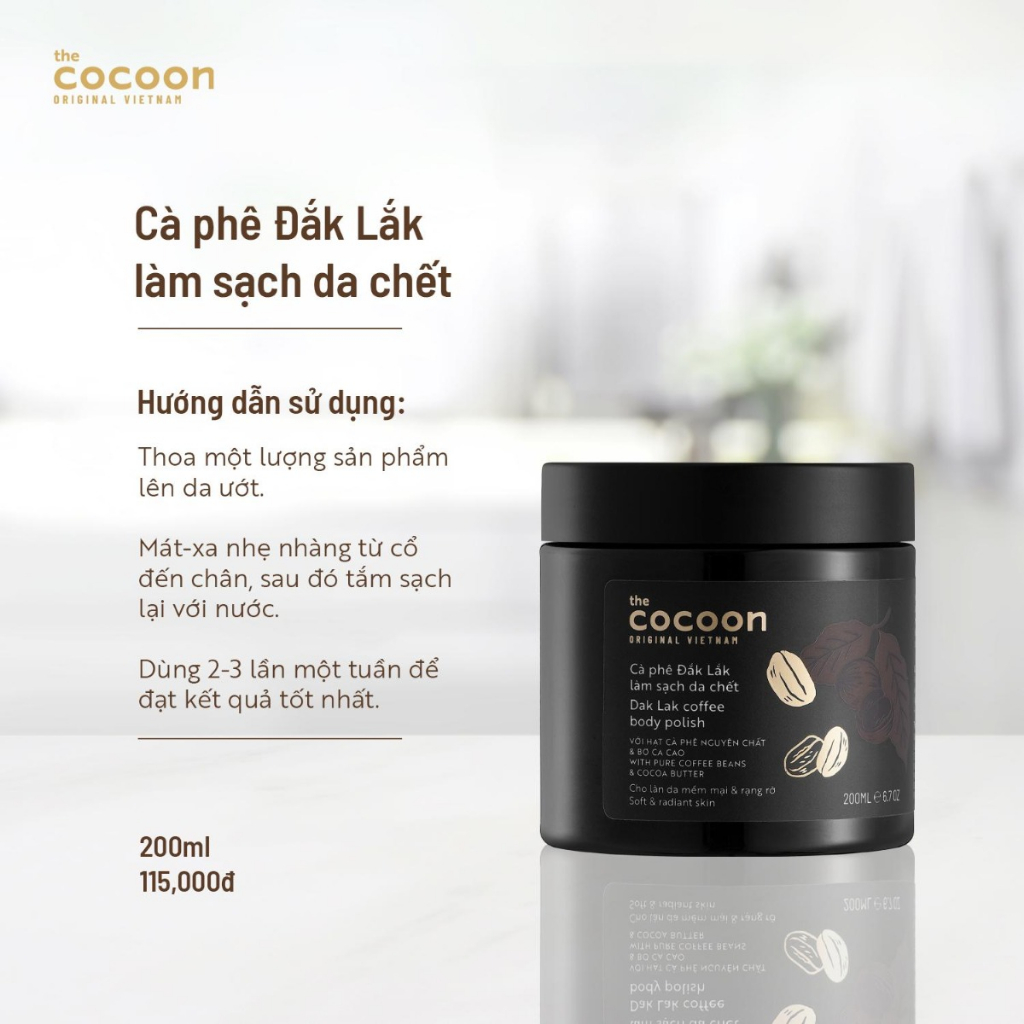 Tẩy da chết body cà phê Đắk Lắk Cocoon Coffee Body Polish cho làn da giảm mụn,mềm mại và rạng rỡ 200ml / Belle Cosmetics