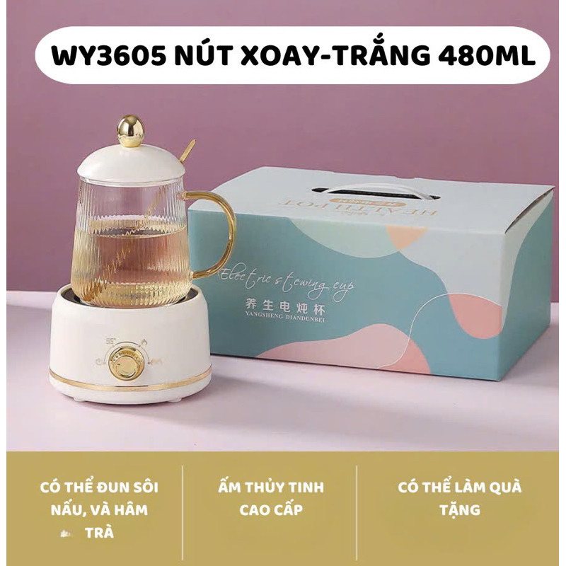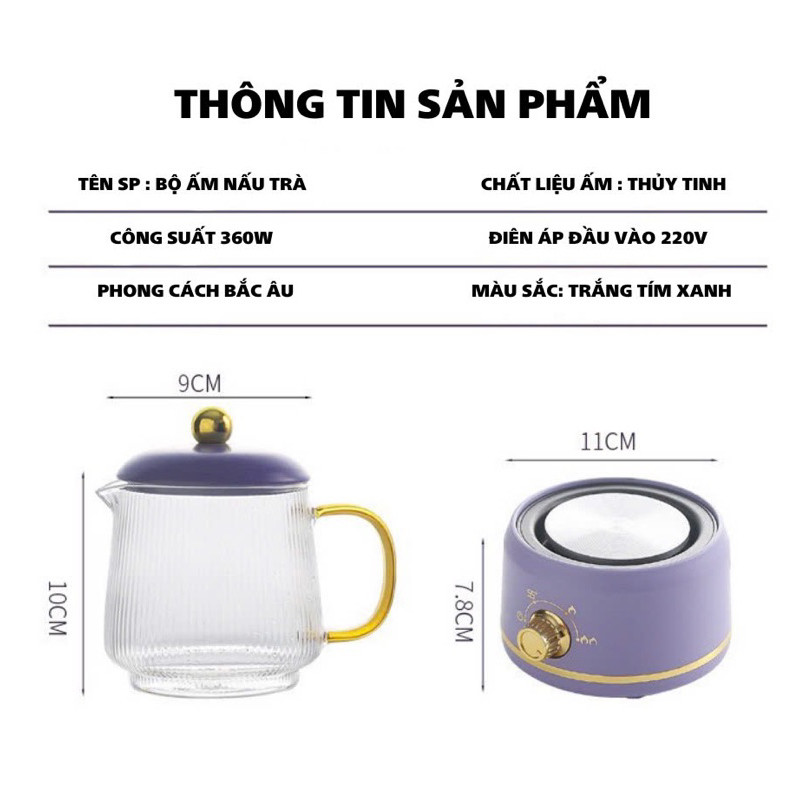 Combo Ấm Pha Trà Cafe kiêm Đế Hâm Công Suất 360w Dung Tích 480ml 600ml, Nhiệt Độ Tới 100 độ, Gia Dụng Thông Minh ME SHOP