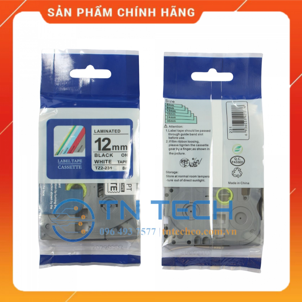 Nhãn In Tz2-231 Brother - Đen nền trắng 12mm x 8m