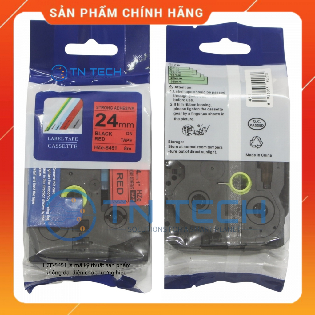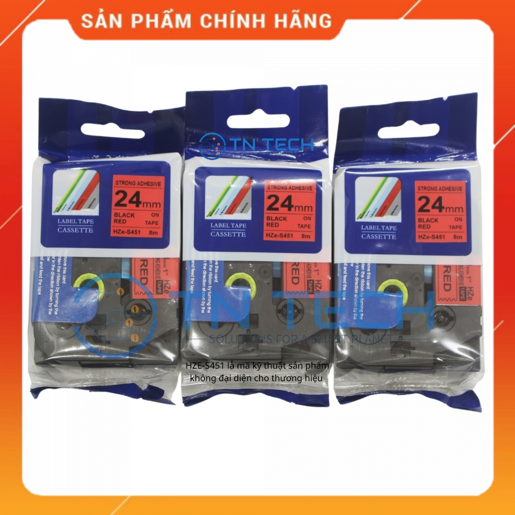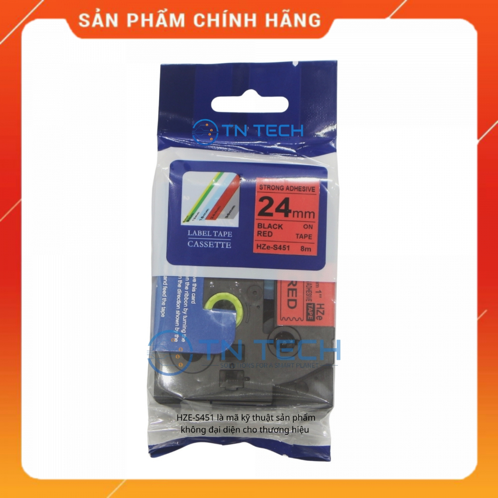Nhãn In HZe-S451 Brother - Đen nền đỏ 24mm x 8m