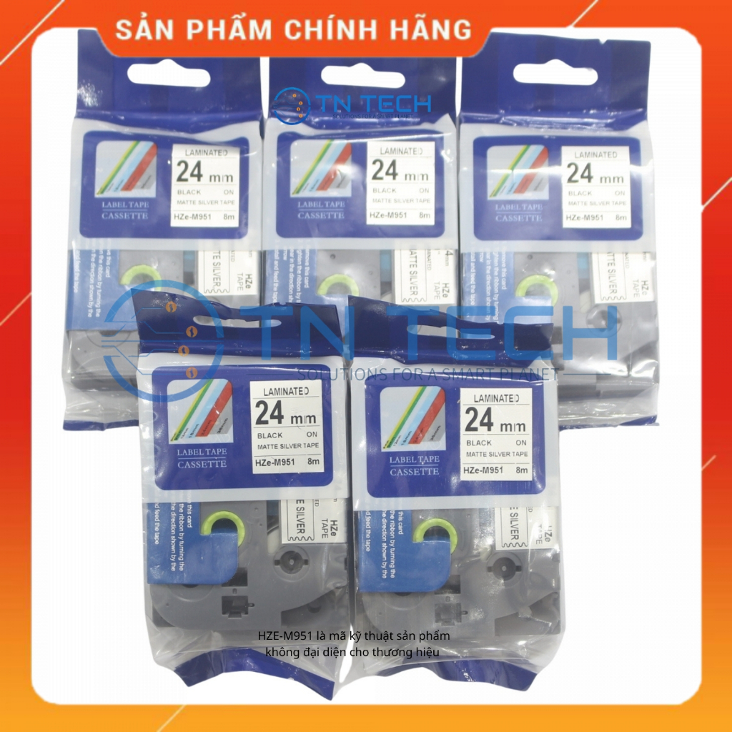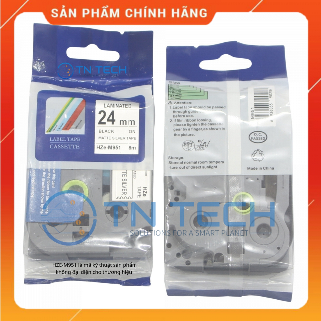 Nhãn In HZe-M951 Brother - Đen nền bạc 24mm x 8m