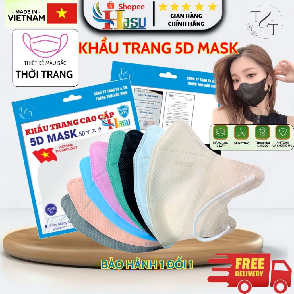 [ Thùng 600-400 Chiếc ] Khẩu trang 5D HASU 3 Lớp Kháng Khuẩn Cao Cấp Chính Hãng, Dày Dặn, Chống Tia UV