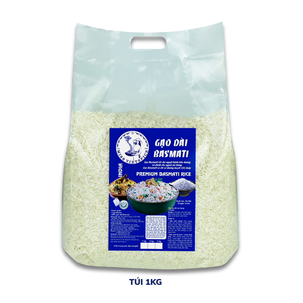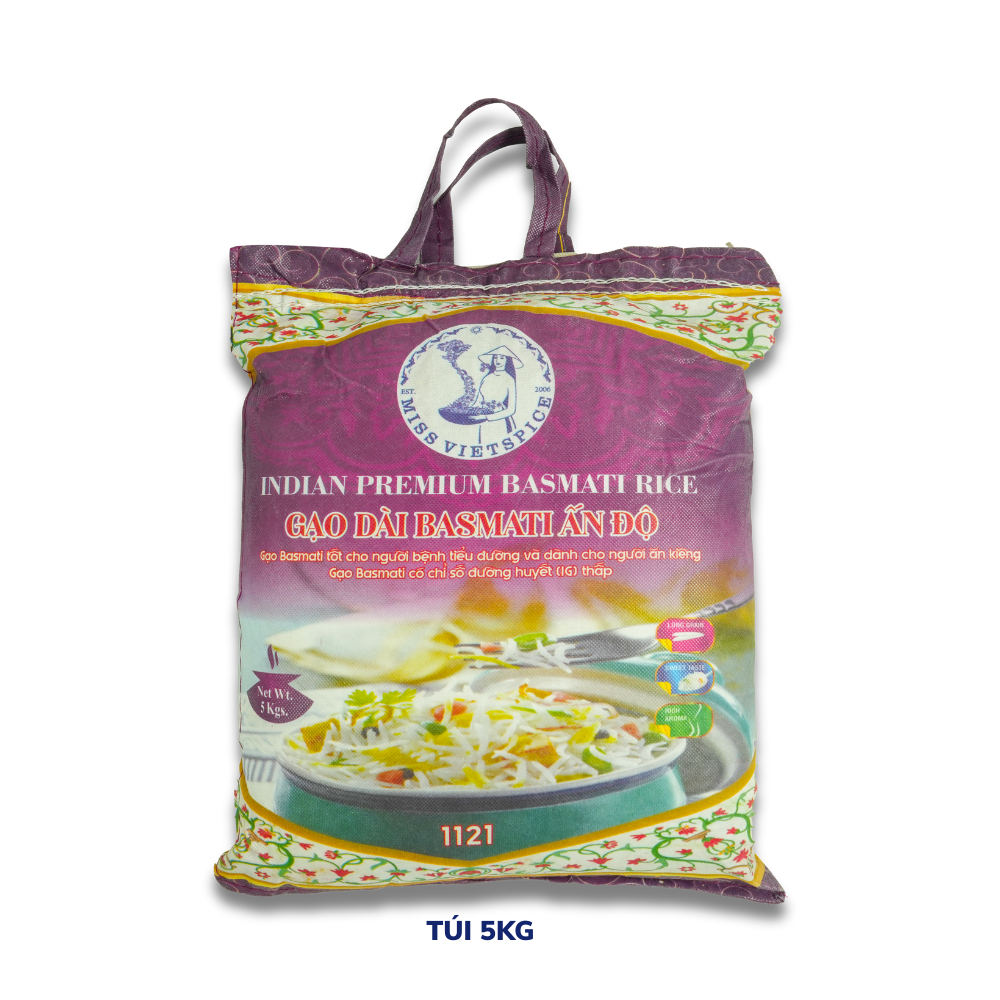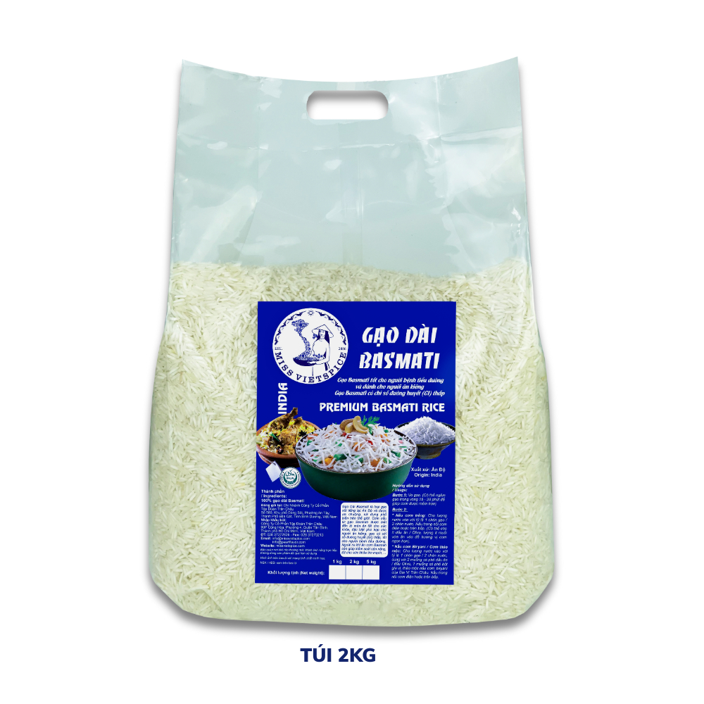 Gạo Basmati Ấn Độ hạt gạo dài có lượng đường huyết thấp cho hạt cơm tơi xốp
