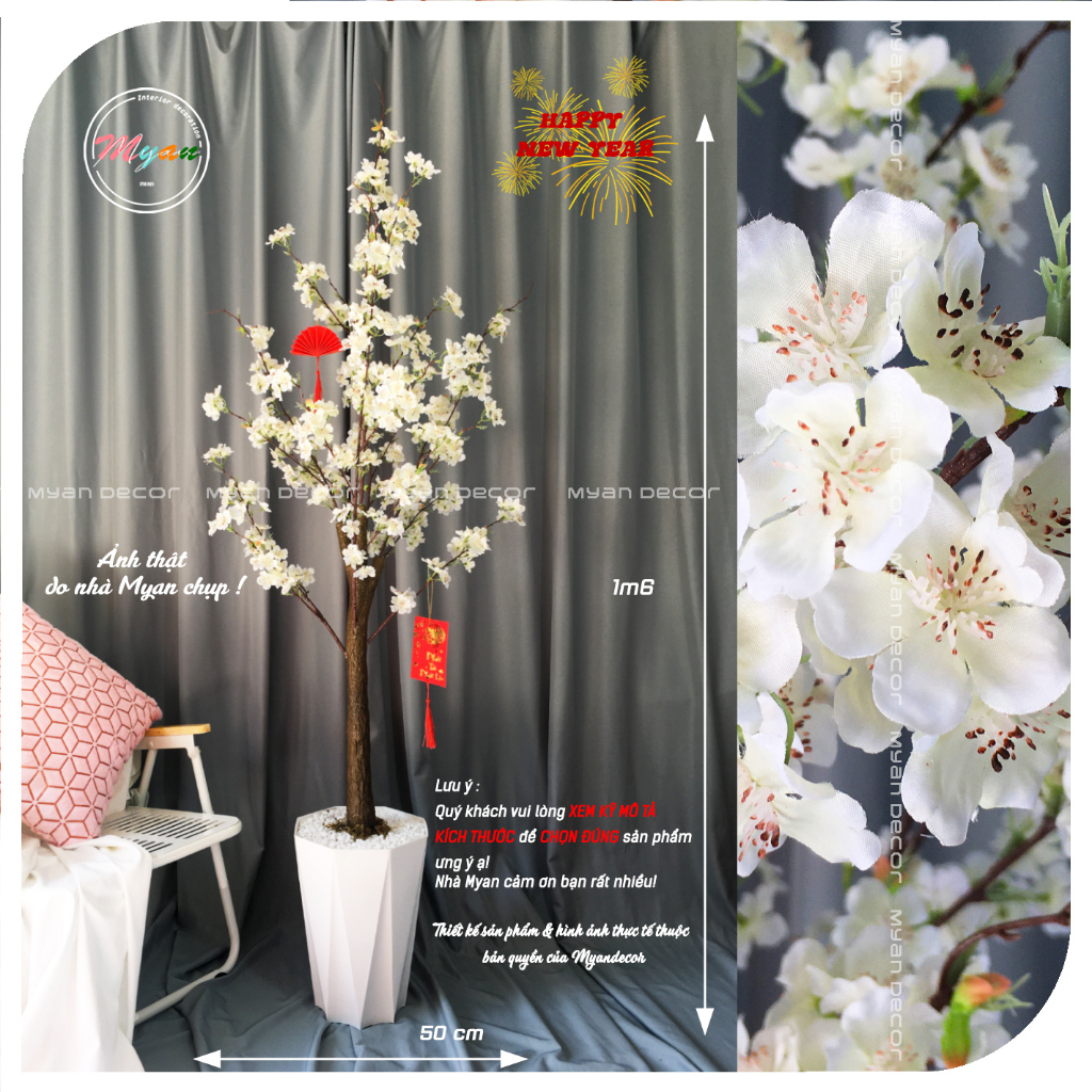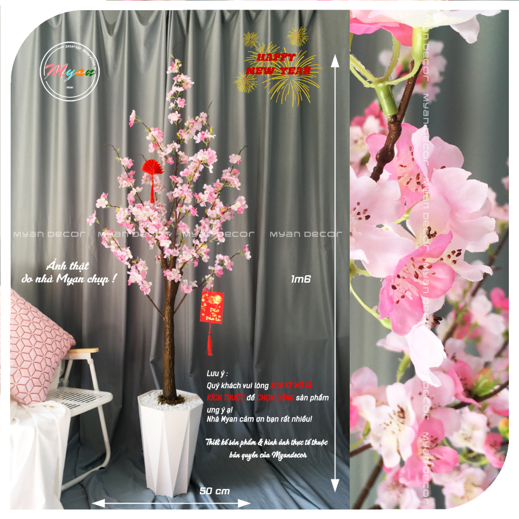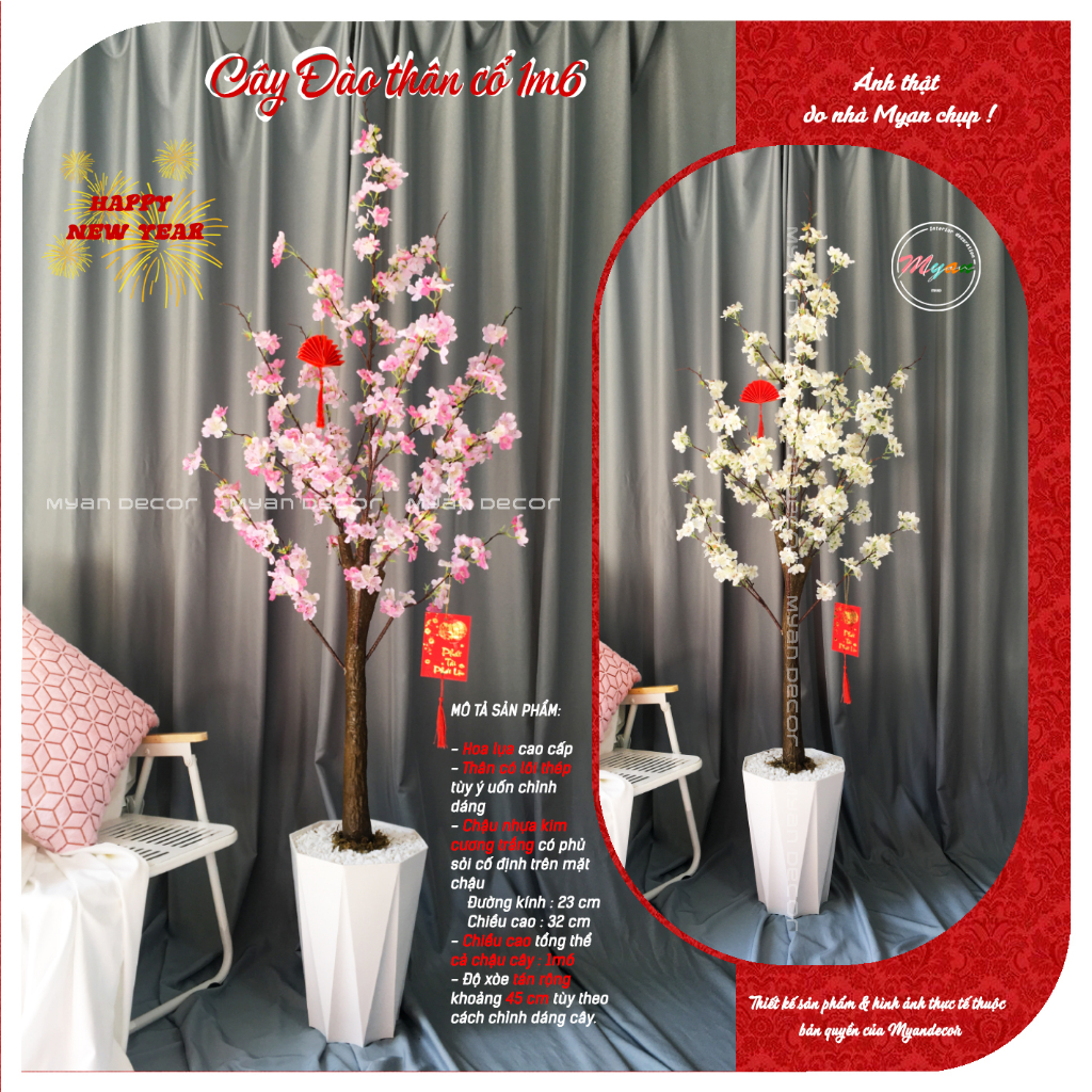 Cây giả, Cây Đào thân Cổ trưng Tết, trang trí nhà cửa, phòng khách, quán cafe,...1m6 (TẶNG SET TREO)