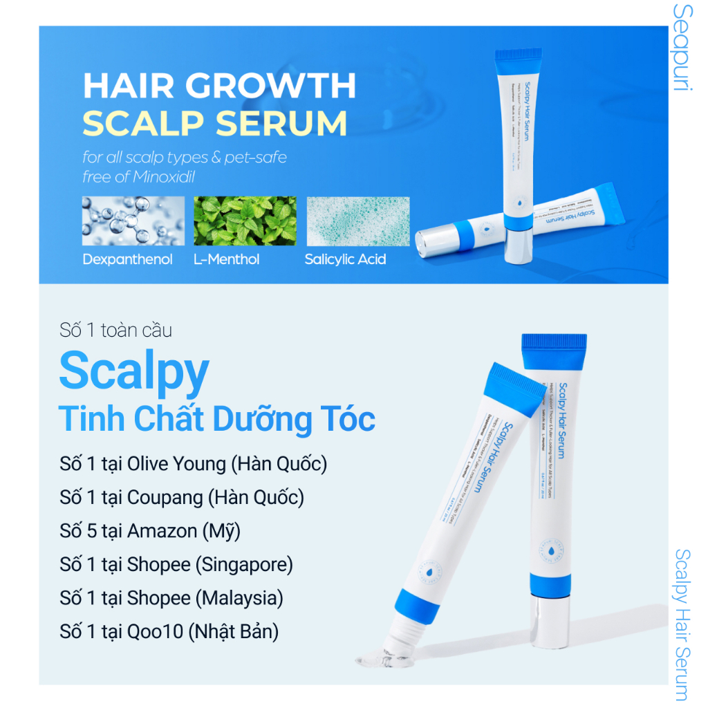 [Seapuri Chính Hãng] SCALPY Tinh Chất Dưỡng Tóc | Sức khỏe da đầu & mọc lại | Nhân bản nang lông | Tăng cường gốc