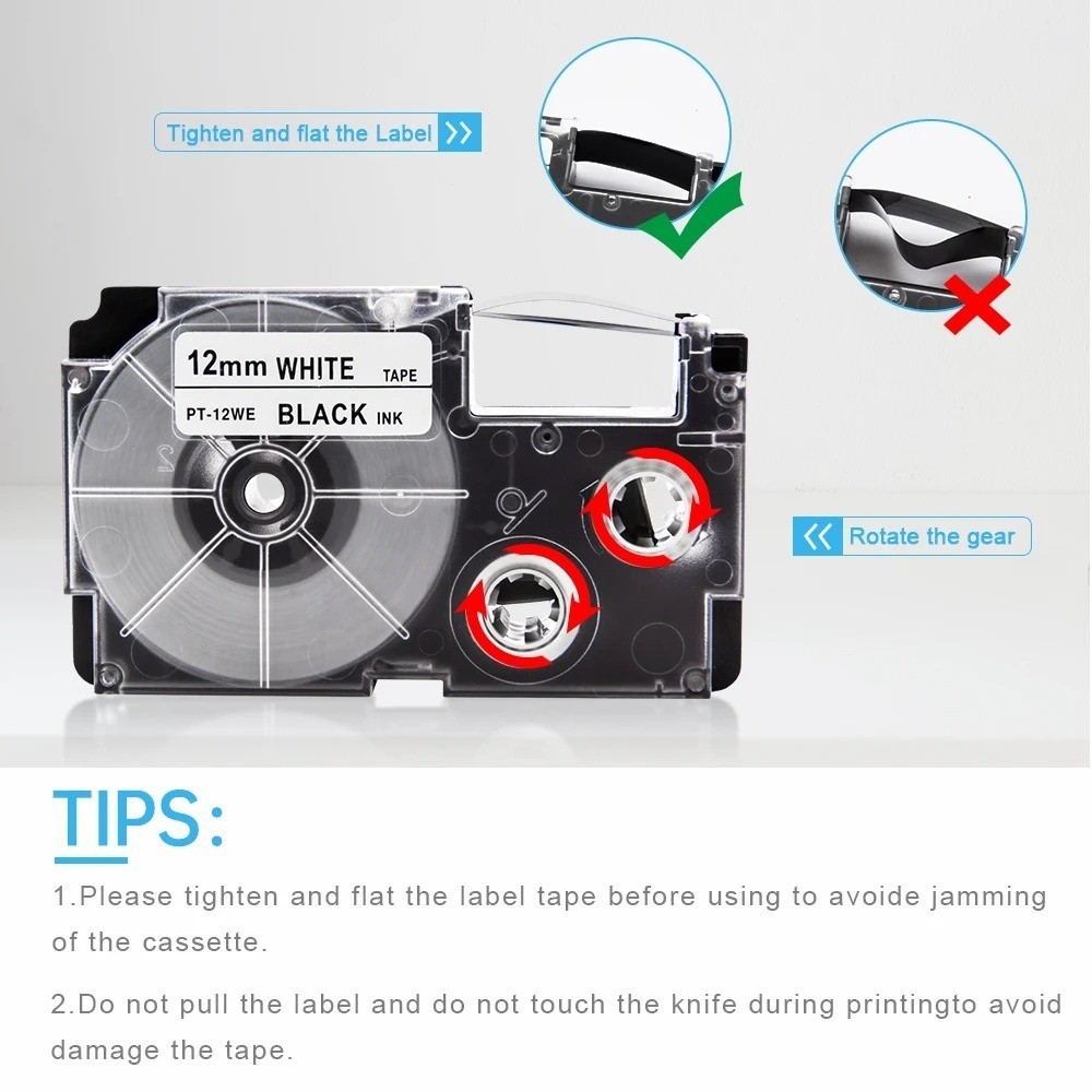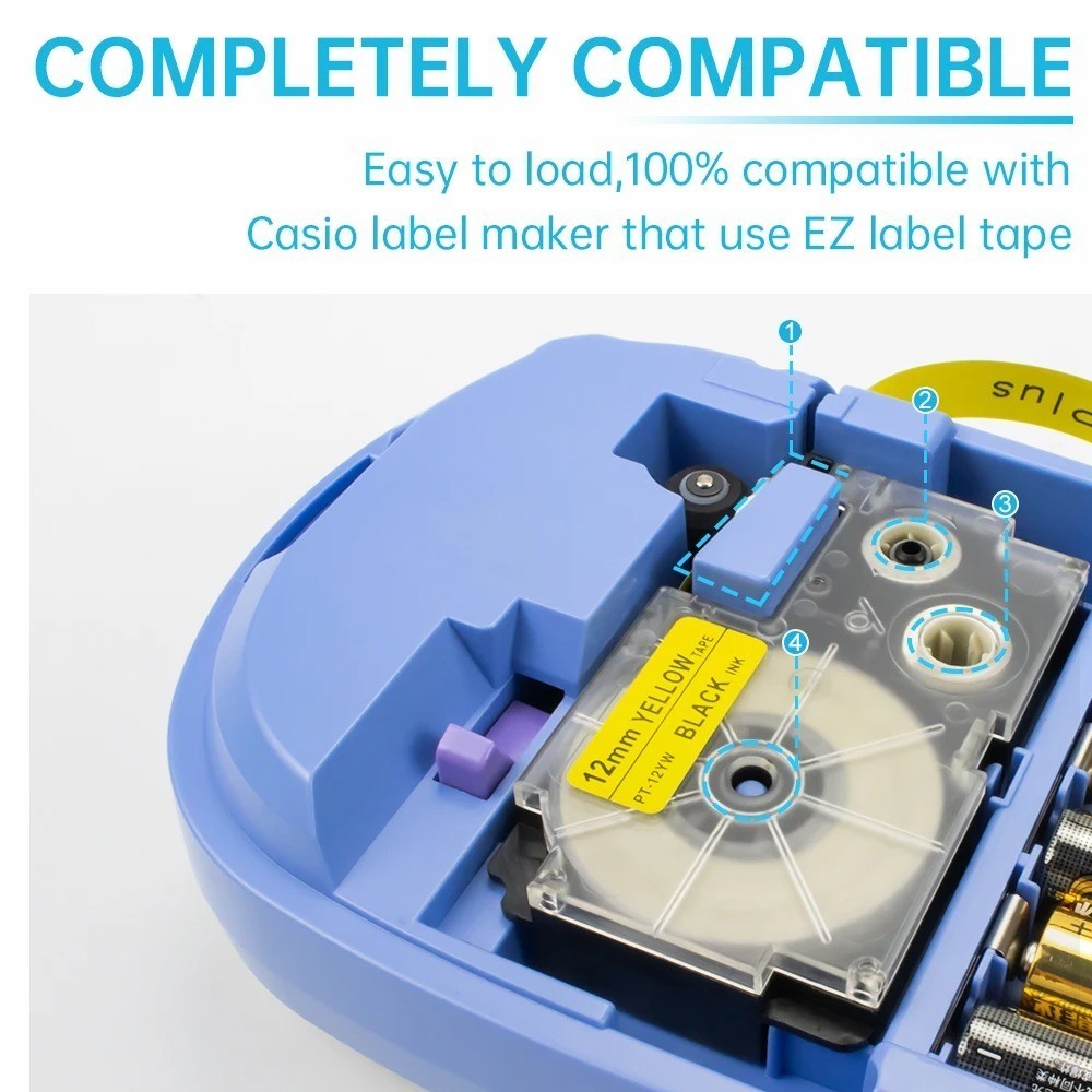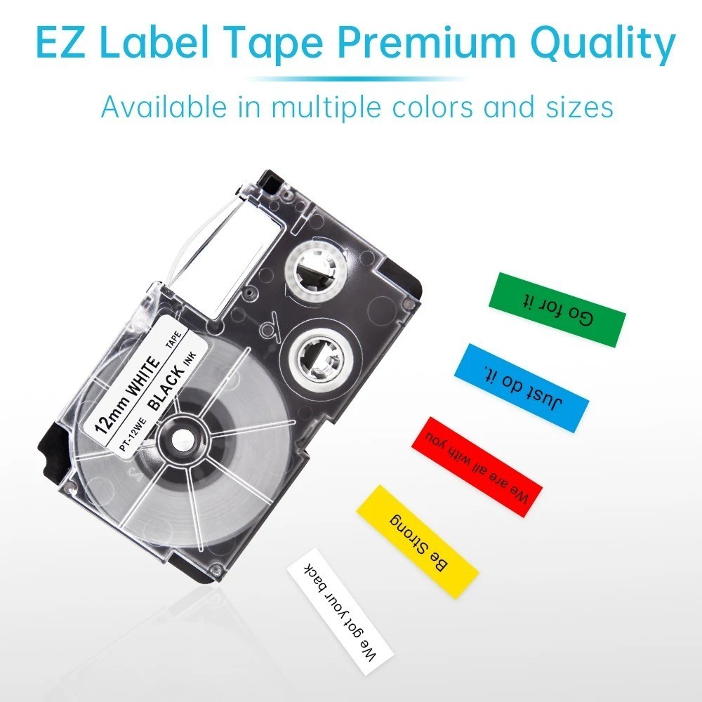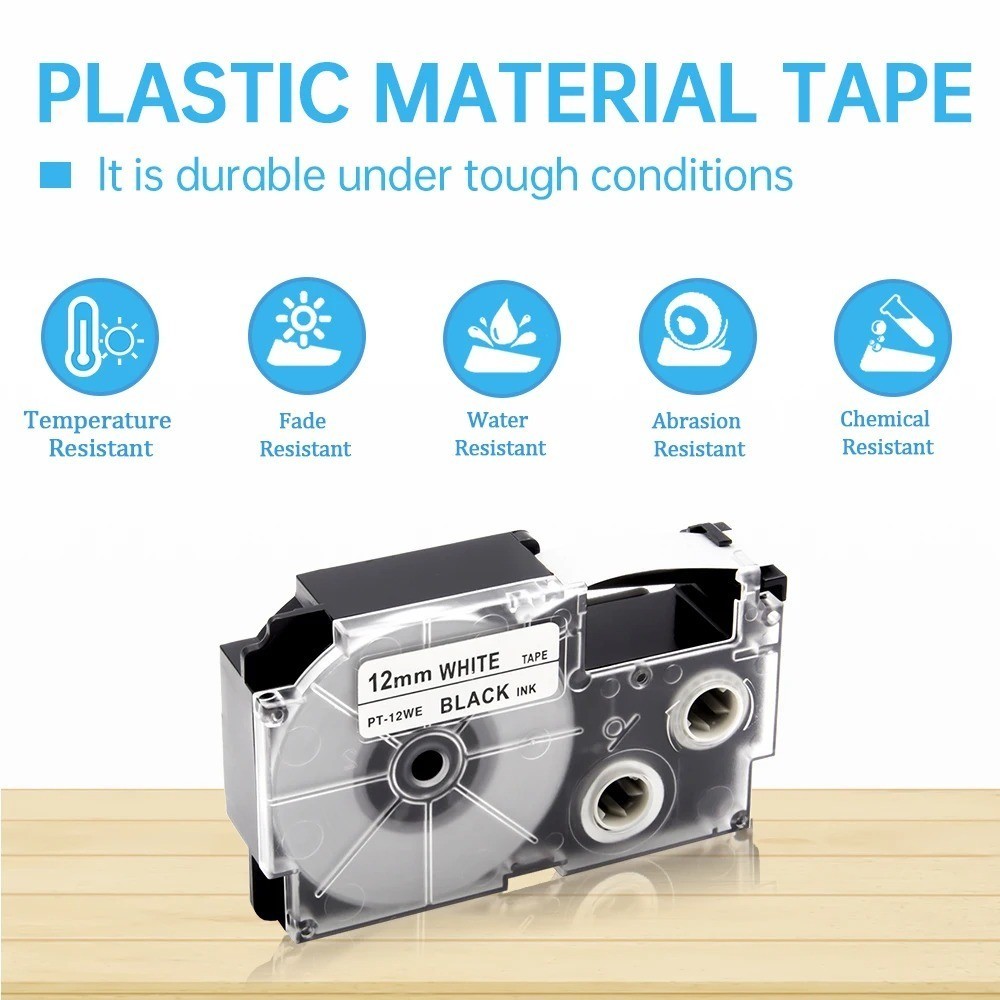 Băng nhãn Casio tương thích 6/9/12/18/24mm XR12WE XR12X XR9WE XR9X XR6WE XR18WE XR24WE cho máy in nhãn Casio KL-60 KL-60SR 820