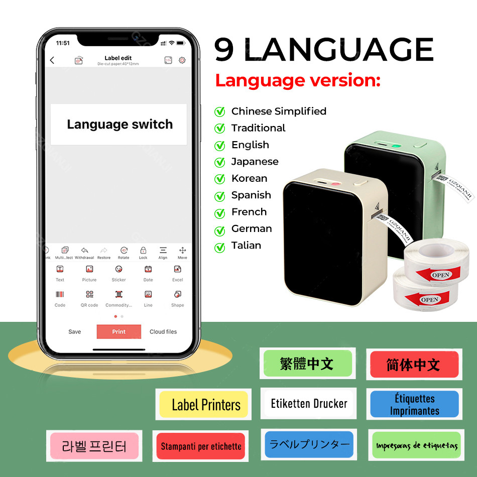 Máy in nhãn P15 Máy in nhãn nhiệt Máy dán nhãn Bluetooth di động Tương tự như D11 D110 D101 Máy tạo nhãn Mini Máy dán nhãn di động hoặc Giấy nhãn 3PK-6PK 12mm