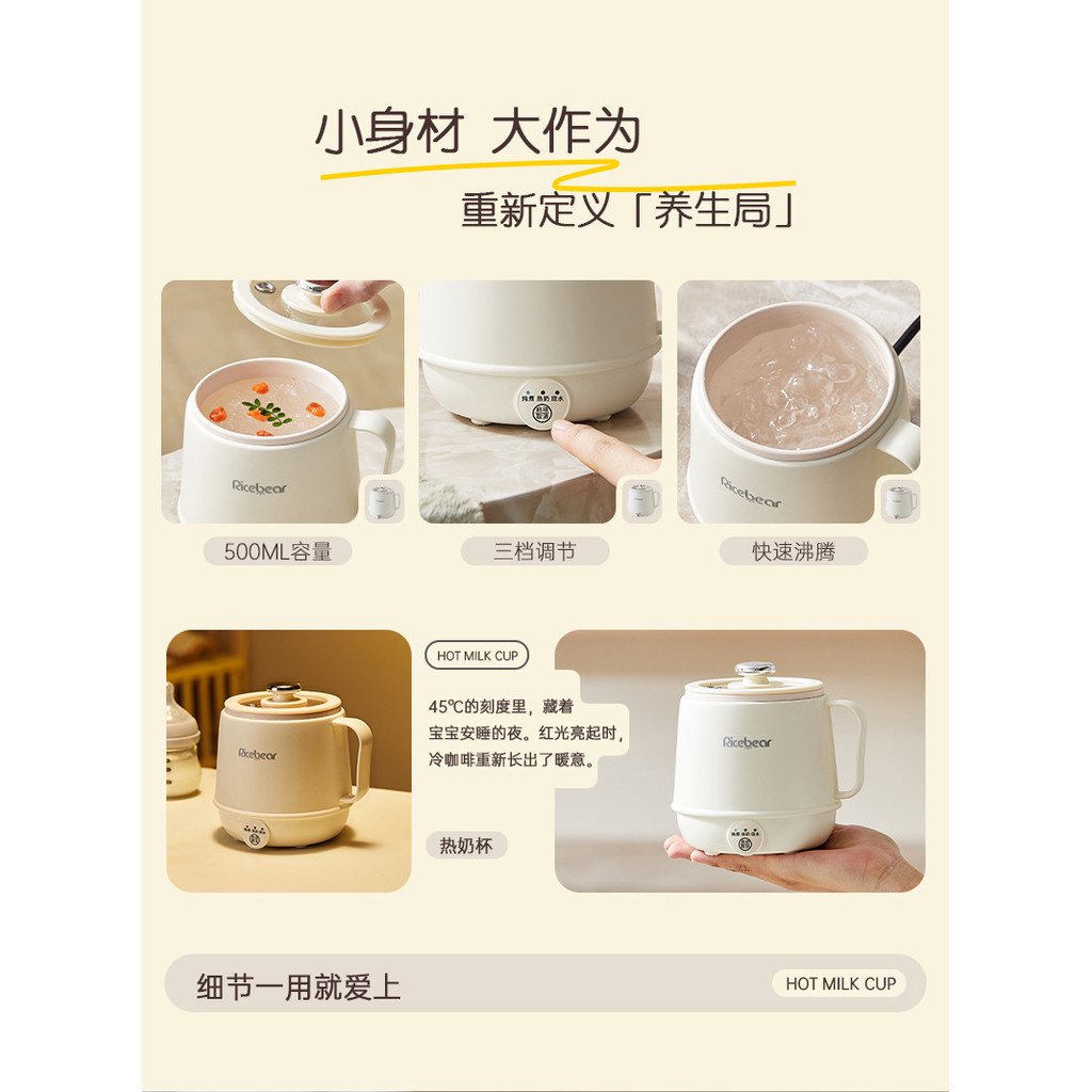 Cốc Sữa Nóng Văn Phòng Mini Y Tế Cốc Hộ Gia Đình Đa Năng Cốc Ăn Sáng Ký Túc Xá Điện Nấu Ăn Cốc Gốm Trục Lót 500ML 220V