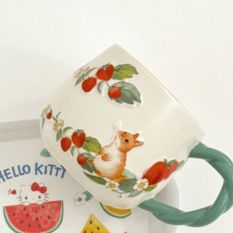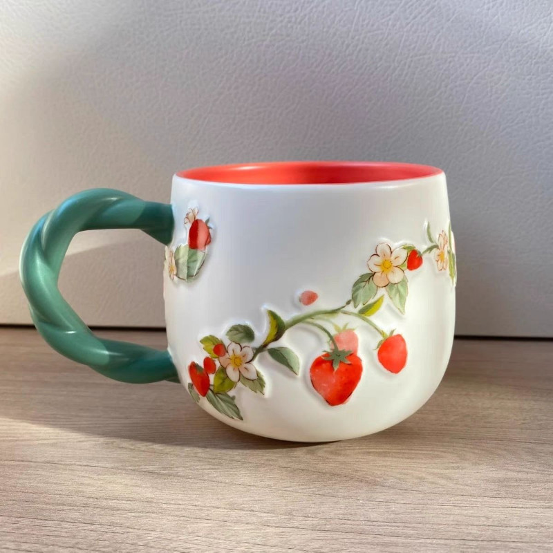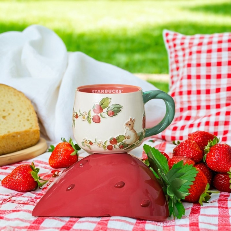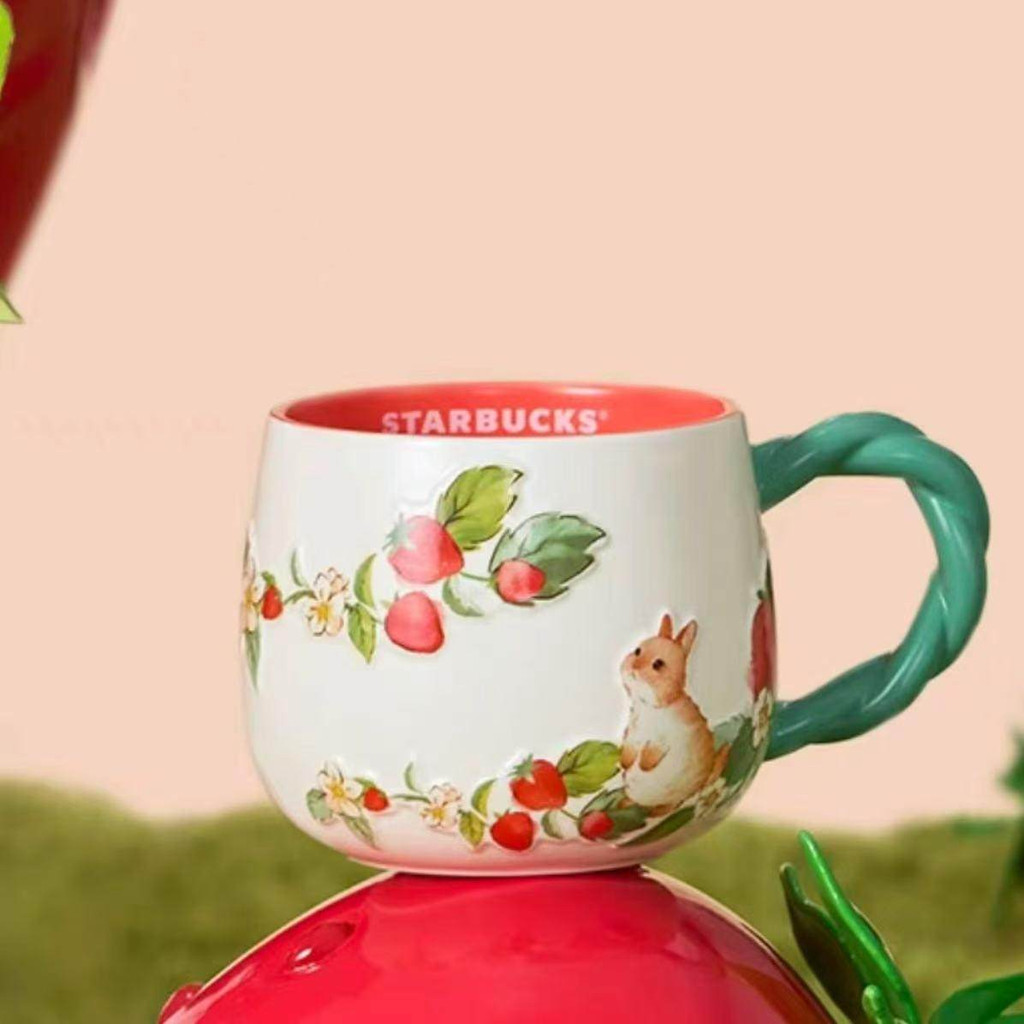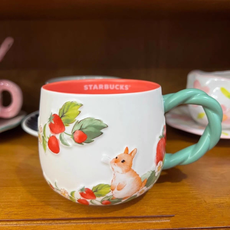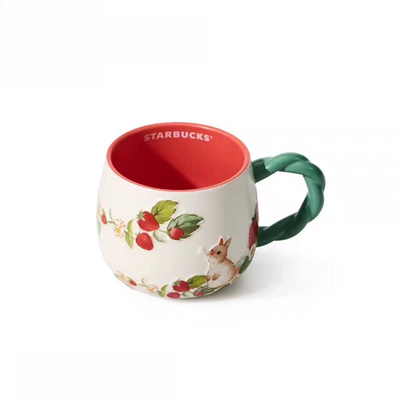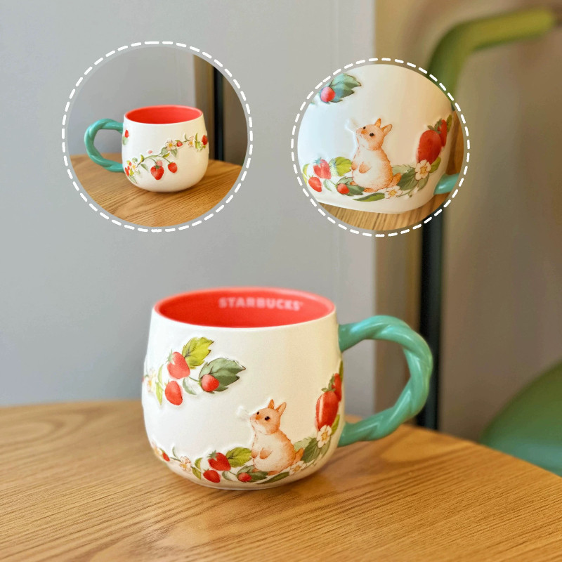 380ml Starbucks Cup Berry Good Time Cup Giảm ba chiều Dễ thương Sáng tạo Thỏ nhỏ Dâu tây Máy tính để bàn Cốc gốm