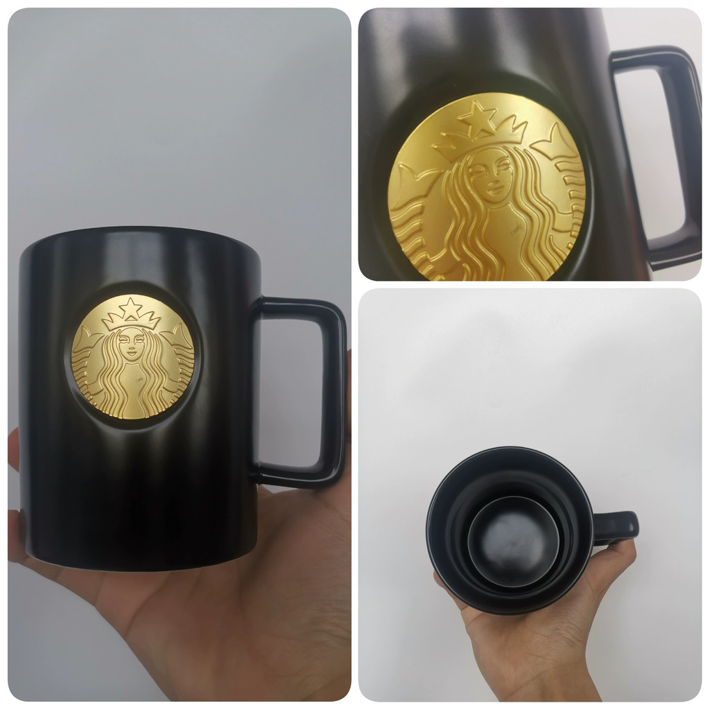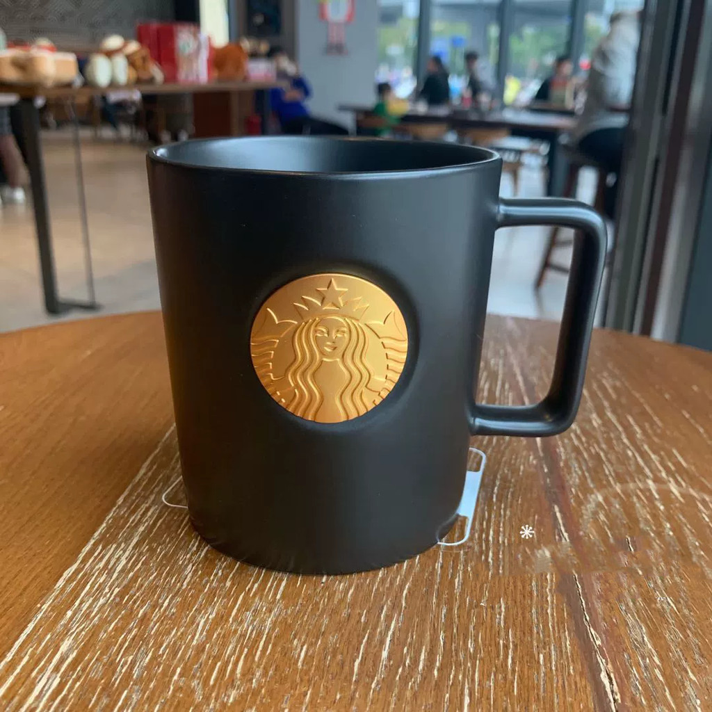 Starbucks Cup 414ml Cổ Điển Vàng Đen Đồng Cói Cà Phê Cốc Cốc Gốm Cốc Văn Phòng Đơn Giản Để Bàn Cốc Nước