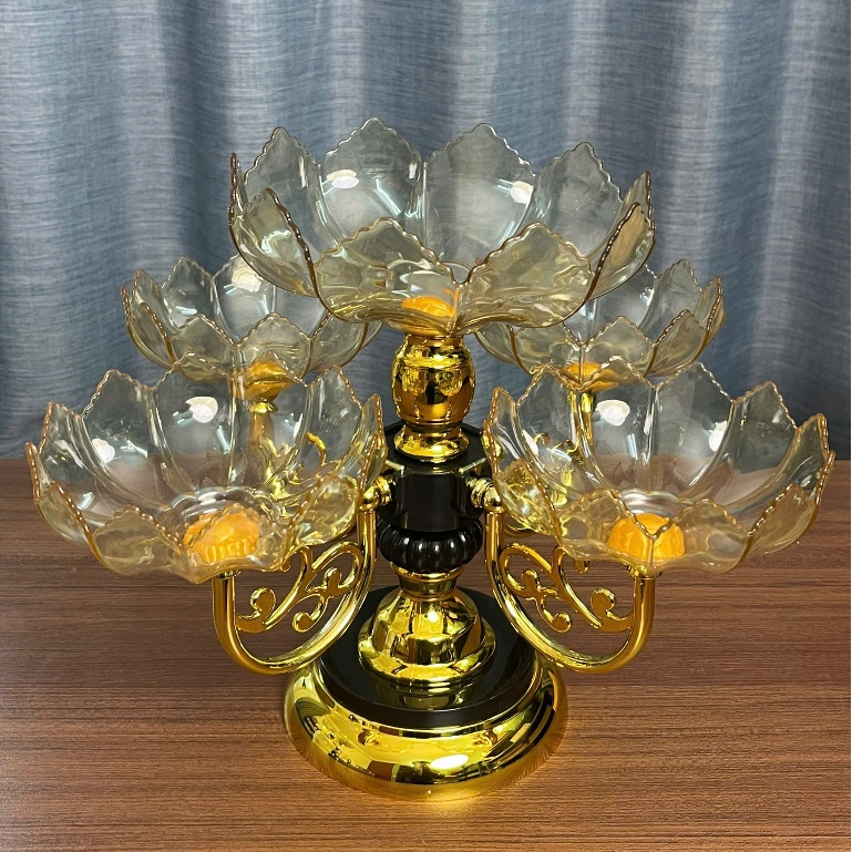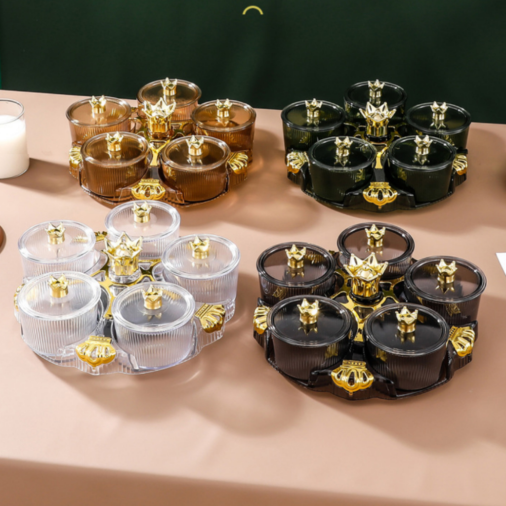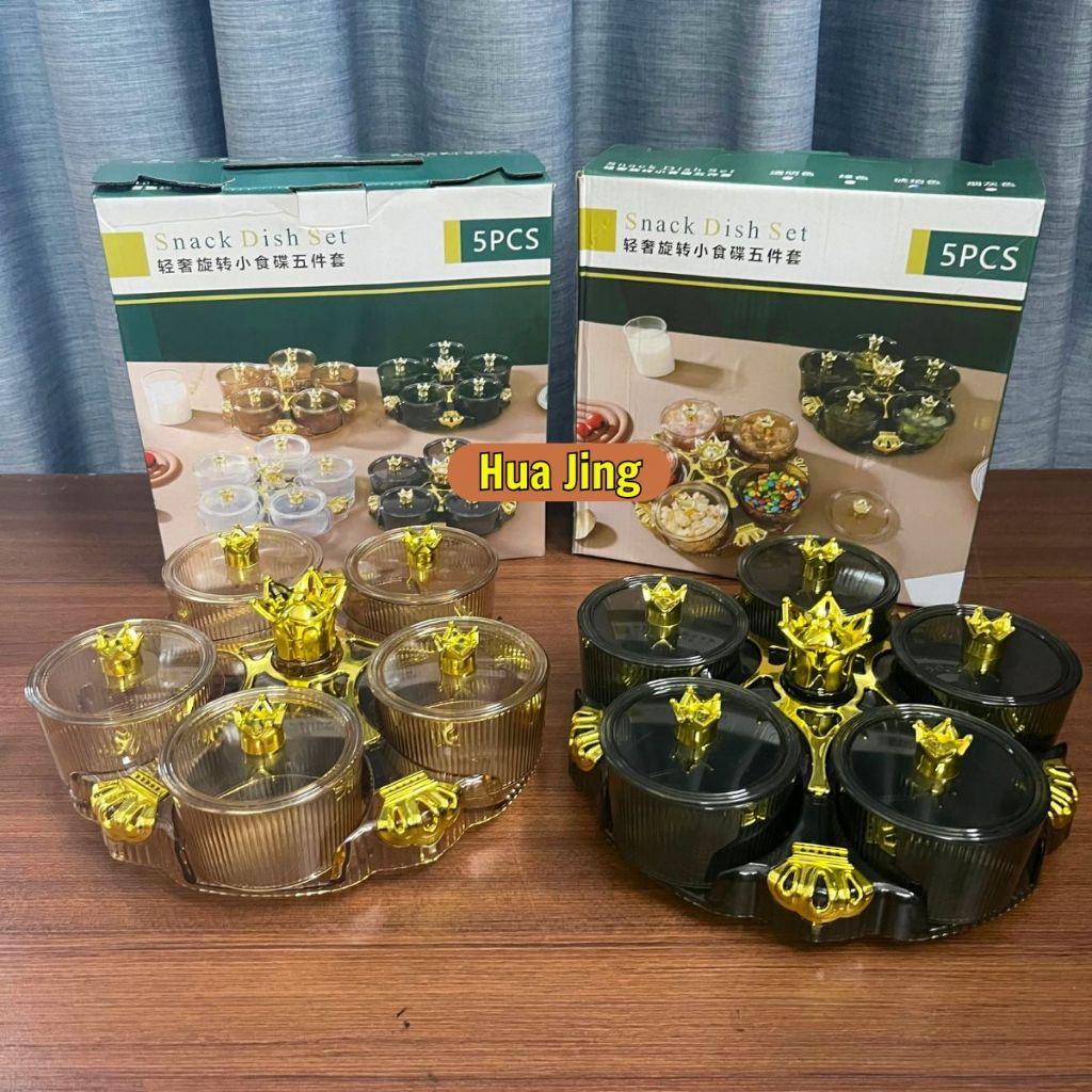 Khay đựng Mứt Tết, bánh kẹo 5 hũ tròn, bộ khay mứt tết nhựa có nắp đậy cao cấp sang trọng - Huajing