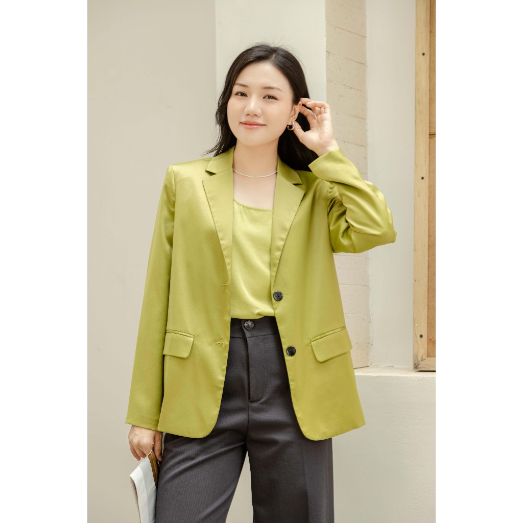 Áo vest nữ áo blazer nữ lụa satin cao cấp Khàn màu vàng tay dài 2 lớp thời trang phong cách sang trọng thanh lịch