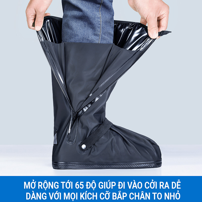 Ủng Đi Mưa, Ủng Bọc Giày Đi Mưa Cổ Cao Đế Cao Su Chống Trơn Trượt Chất Liệu PVC Cao Cấp Chống Thấm 100%