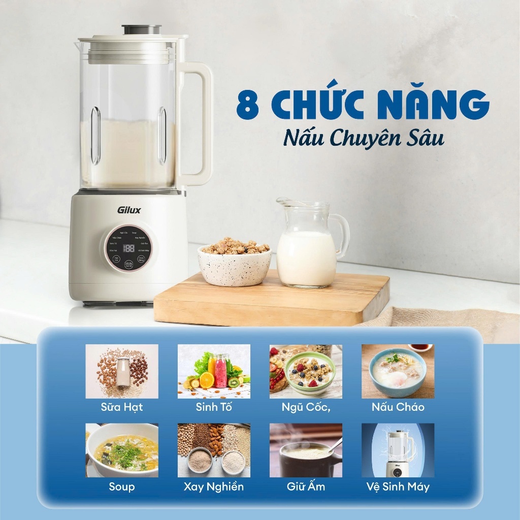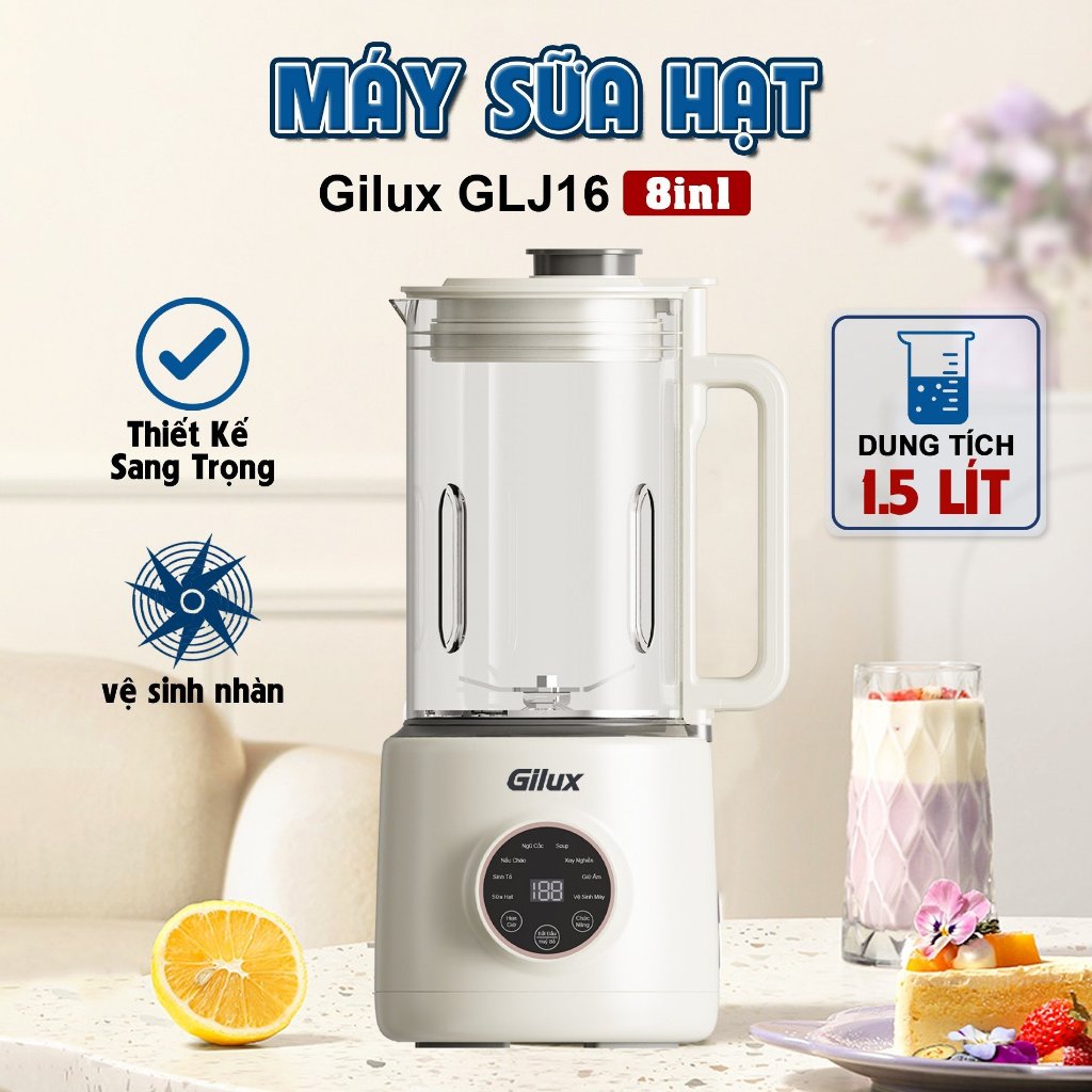Máy Làm Sữa Hạt Gilux 1.5L GLJ16 Đa Năng 8in1 Độ Ồn Thấp Chống Trào - Bảo Hành 12 Tháng