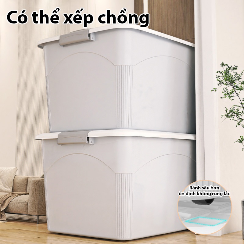Thùng nhựa có nắp đựng đồ có bánh xe Hộp đựng đồ dung 61L/95L/132L/195L Thùng Đựng Quần Áo Chống Bụi Màu Xám Xanh hồng