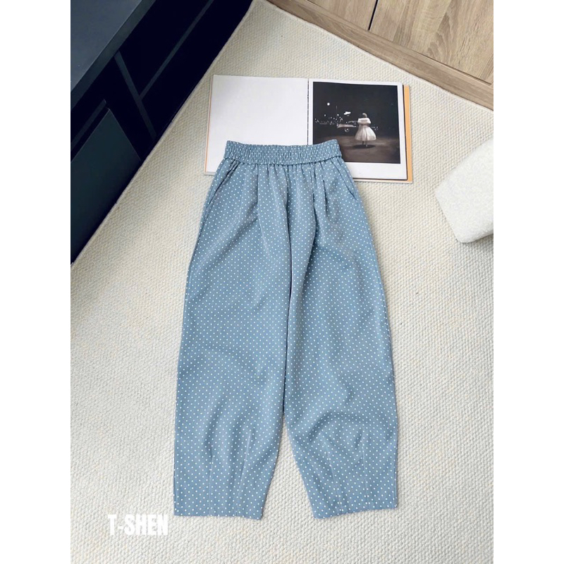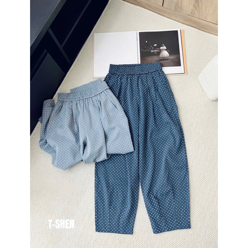 Quần bom, quần baggy dáng thụng chất liệu bò giấy loại 1 chuẩn from lưng chun co giãn có túi 2 bên hoạ tiết chấm bi