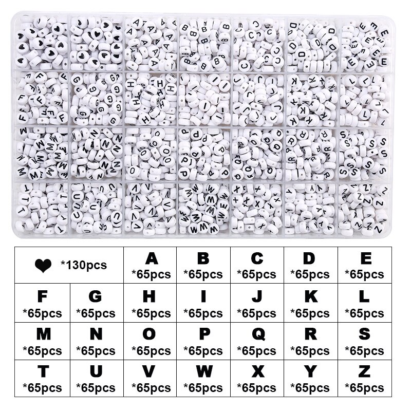 Bộ Hạt Xỏ Vòng Tay / Vòng cổ 2mm Bằng Acrylic In Chữ Nhiều Màu Độc Đáo DIY