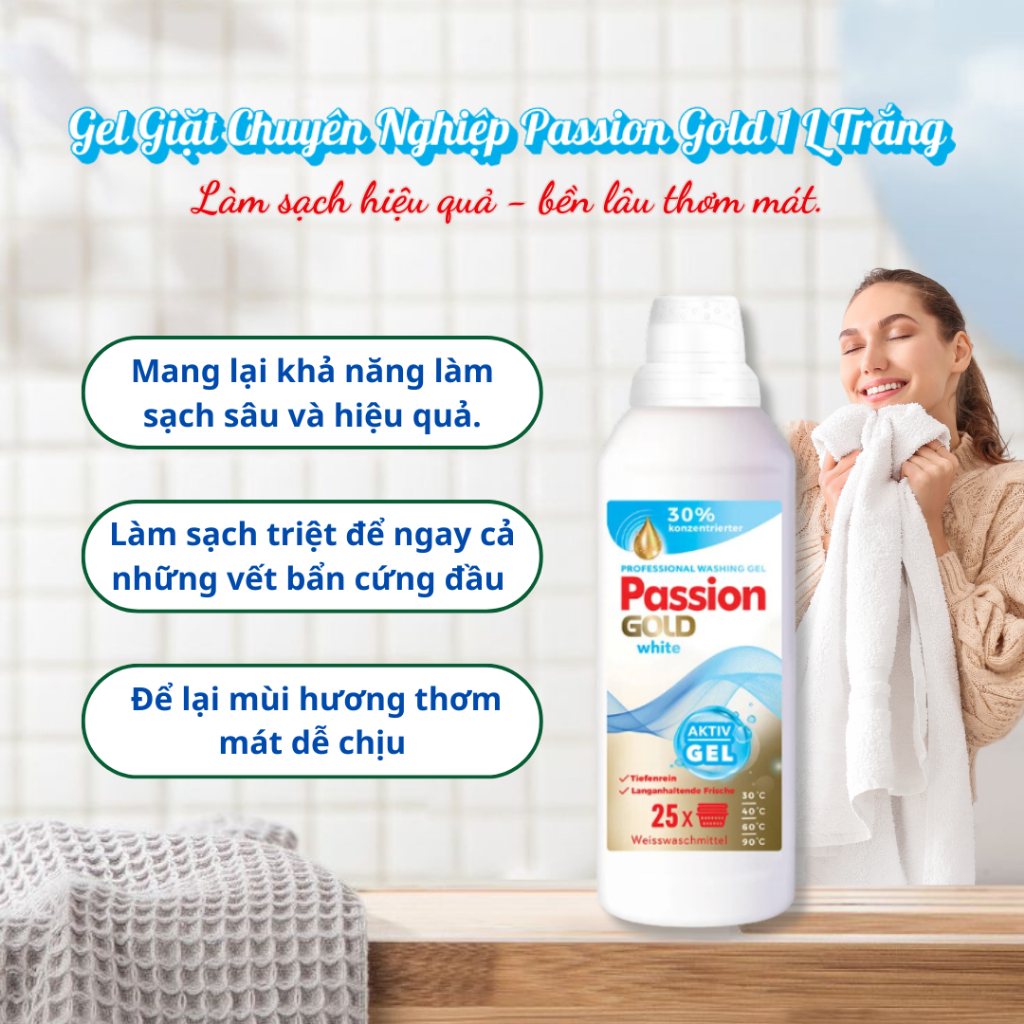 Nước Giặt Quần Áo Chuyên Dụng Passion Gold 4 Lít - Nước Giặt Đồ Cho Vải Trắng Và Vải Màu Hàng Chính Hãng