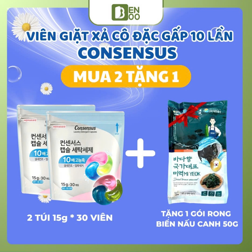 🧺 [Mua 2 Tặng 1] Viên Giặt Cao Cấp Hàn Quốc Consensus – Sạch Sâu, Thơm Lâu, Dịu Nhẹ Cho Da