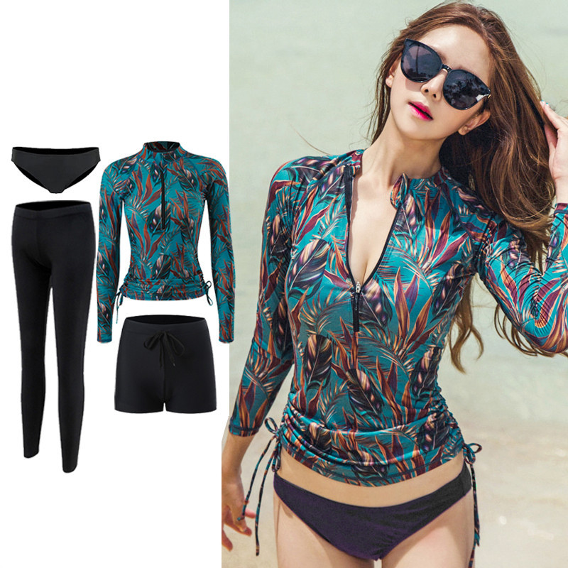 Dài Tay Dây Kéo Lướt Sóng Bộ Đồ Bơi Nhiều Mảnh Thể Thao Đồ Bơi Nữ Dây Rút Chống Nắng Thoáng Khí Nhanh