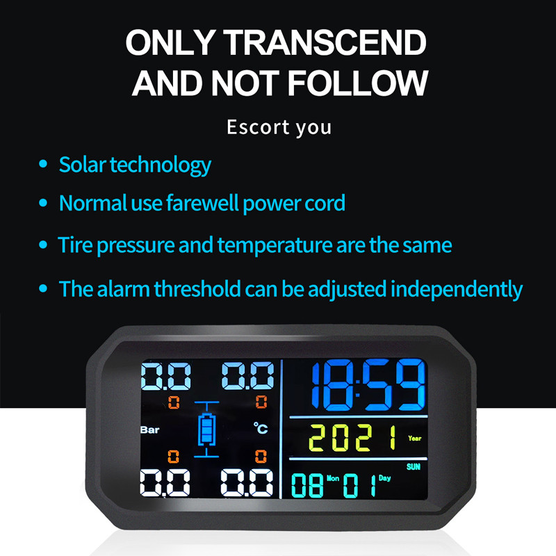 Mới Không Dây 4 Dụng Cụ Lốp TPMS Hệ Thống Theo Dõi Áp Suất Lốp Xe Ô Tô Điều Khiển Đồng Hồ Tự Động Năng Lượng Mặt Trời Màn Hình Lớn Màn Hình LCD Hiển Thị