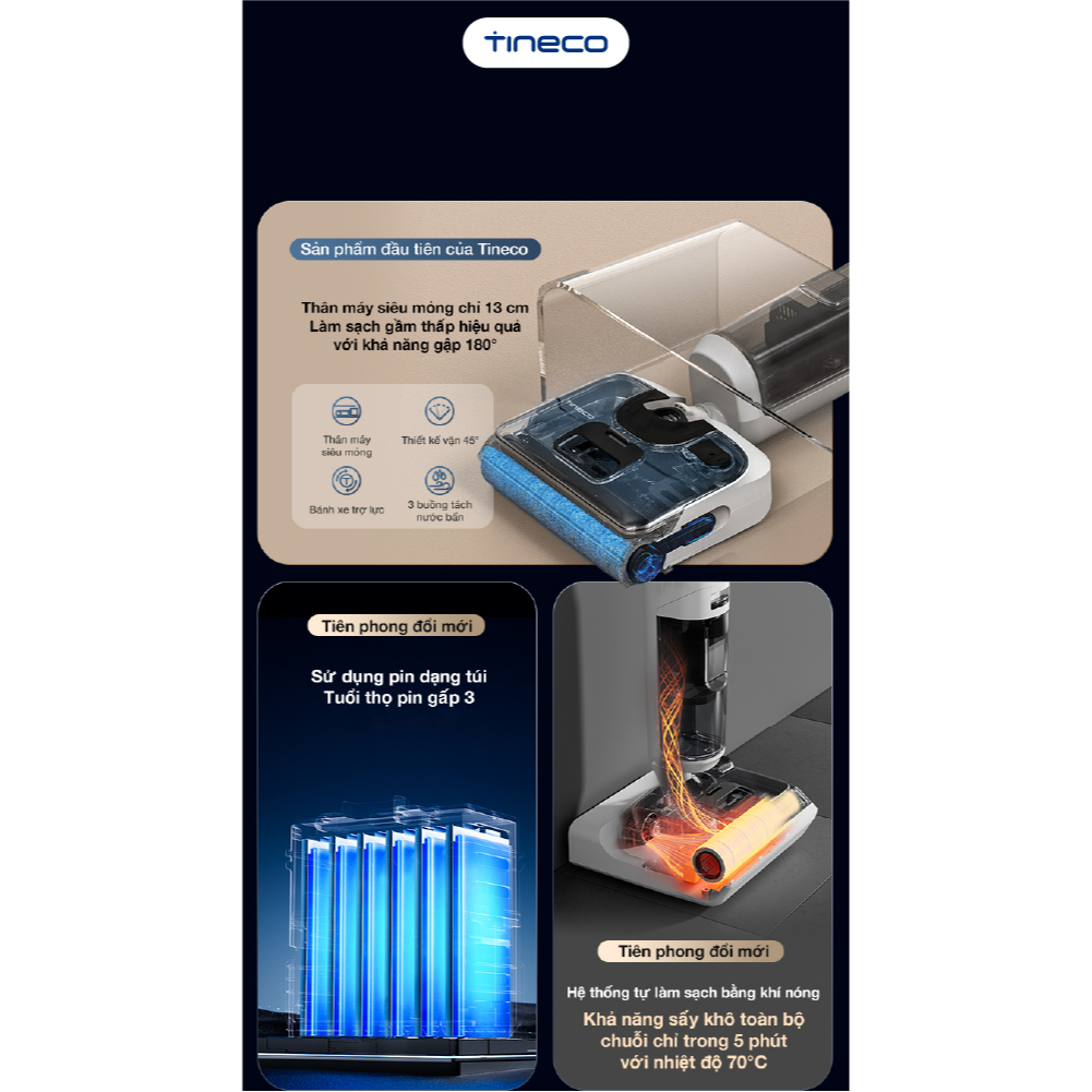 Máy hút bụi lau nhà khô ướt cầm tay Tineco Floor One Stretch S6 - Lực hút 20000pa - Giặt sấy nóng 70 độ - BH 12 tháng