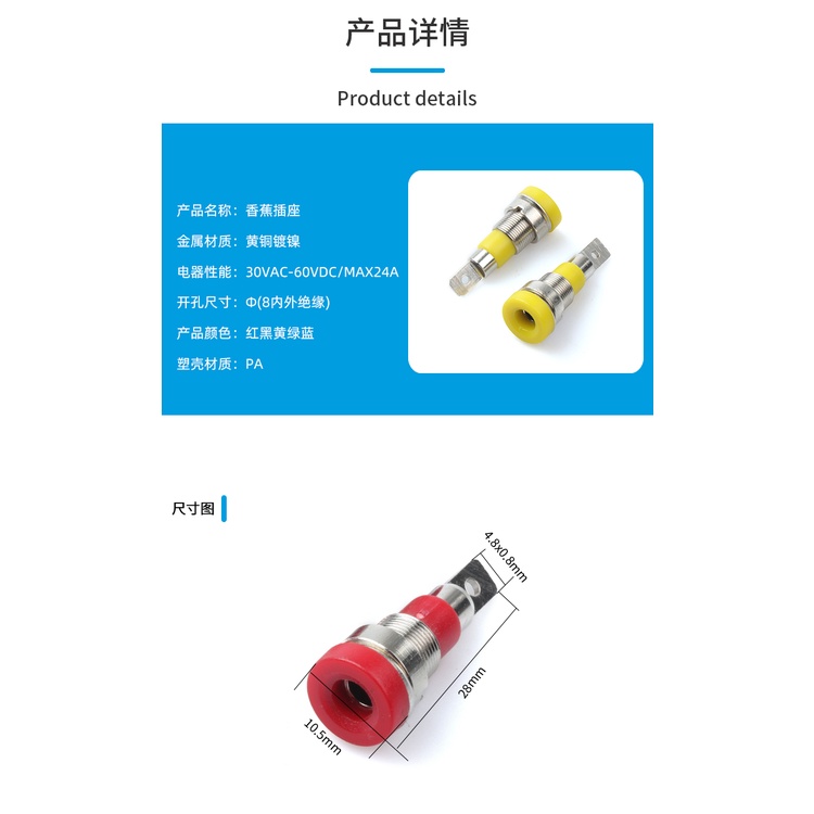 Ổ Cắm Bắp Chuối Bằng Đồng Nguyên Chất 4mm 24a m4 * 28