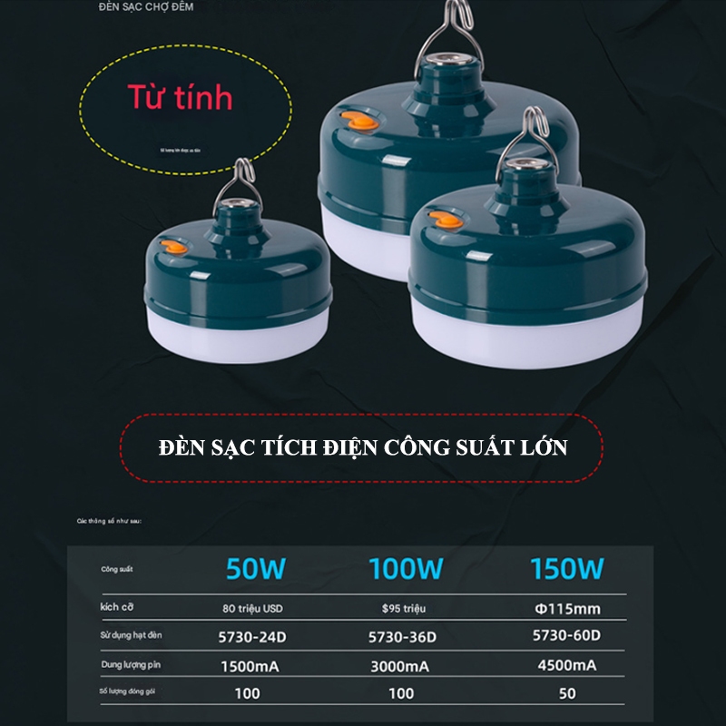Đèn Treo Tích Điện Pin Trâu 3600mAh Sử Dụng 5-8H Bóng Đèn Tích Điện 150W Công Suất Lớn Kháng Nước.