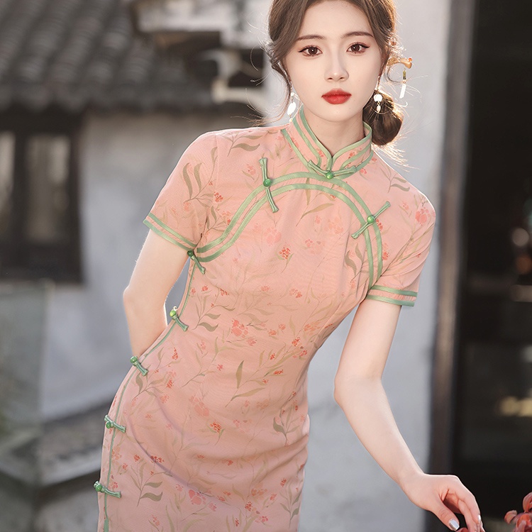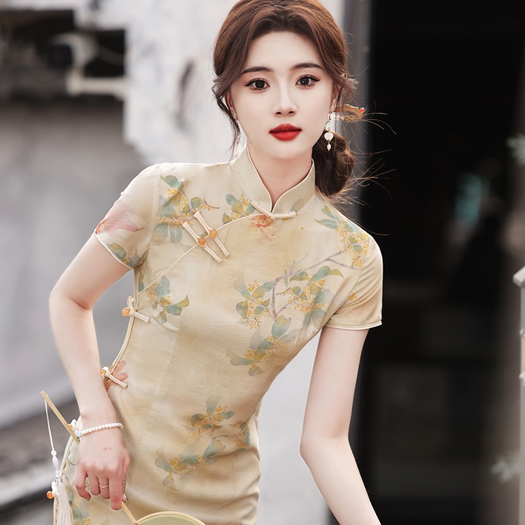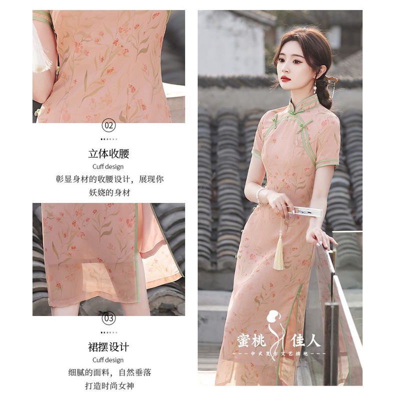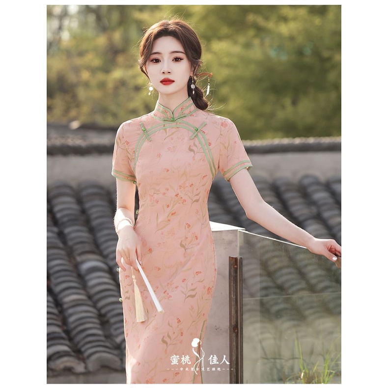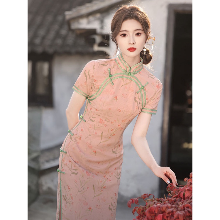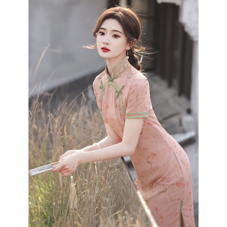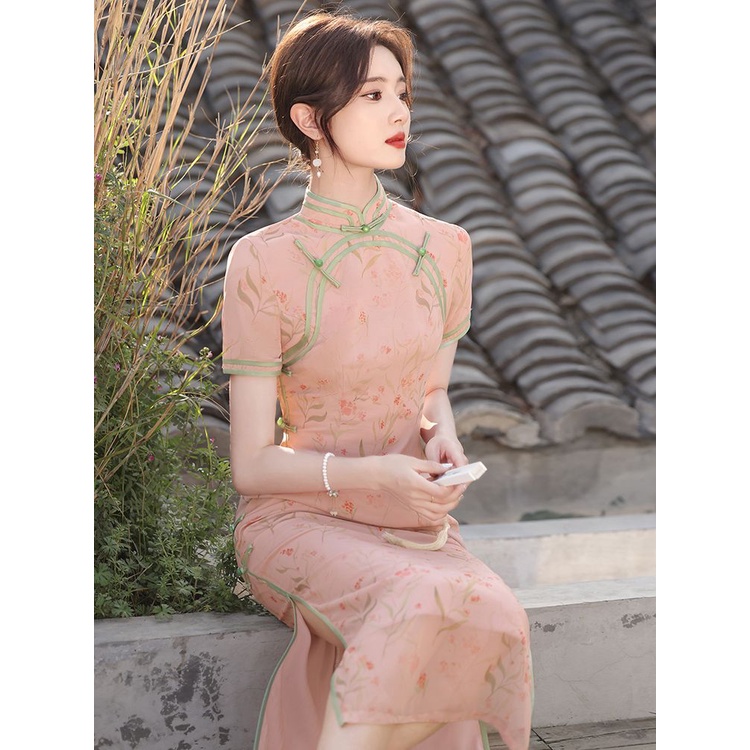Mới Sườn Xám Cách Tân Dáng Dài Thời Trang Mùa Hè 2023 Cao Cấp Cho Nữ
