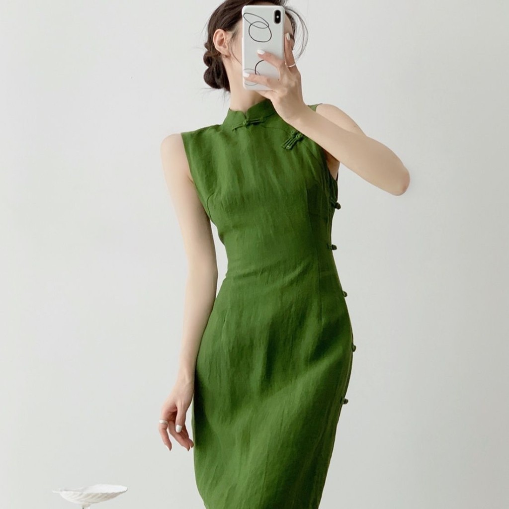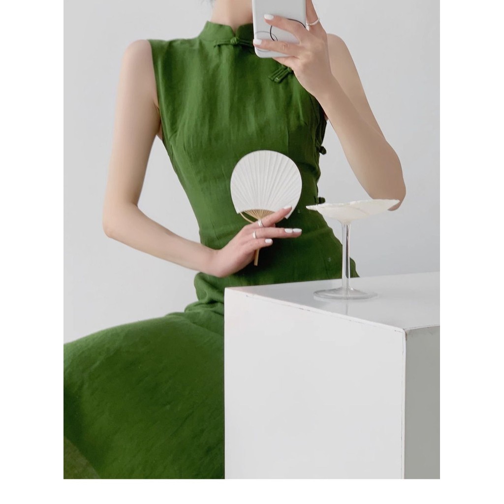 Đầm sườn xám cải tiến phong cách Trung Quốc mới mùa hè 2024 Phong cách mới