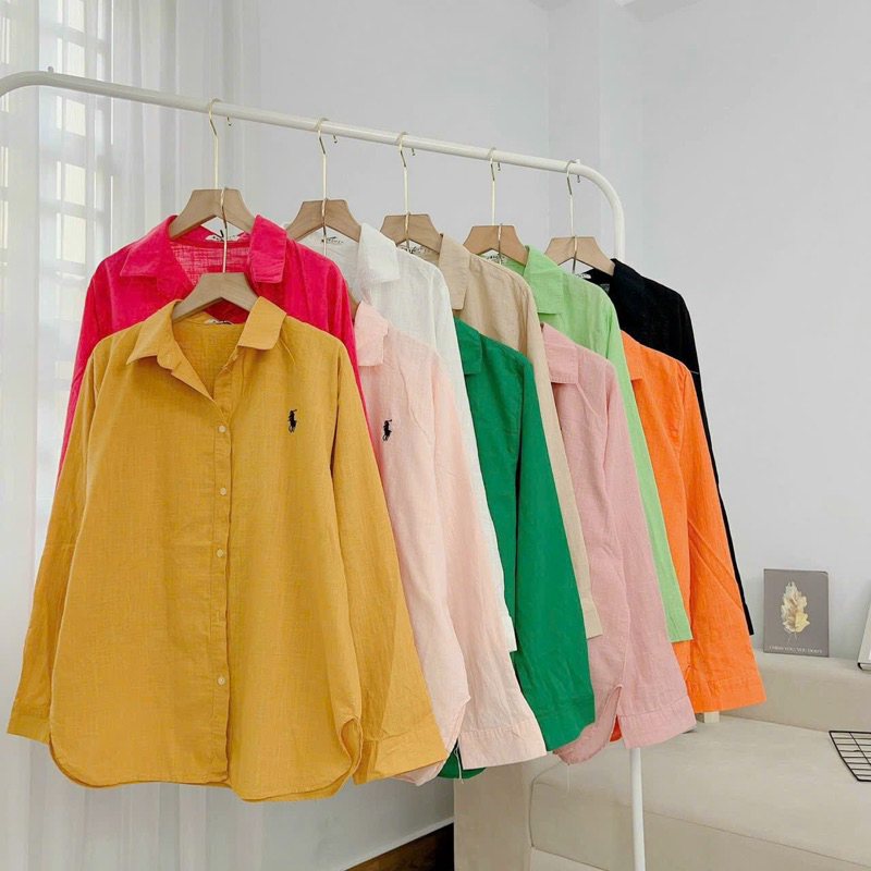 Áo sơ mi nữ chất liệu linen thêu ngựa phong rộng freesize