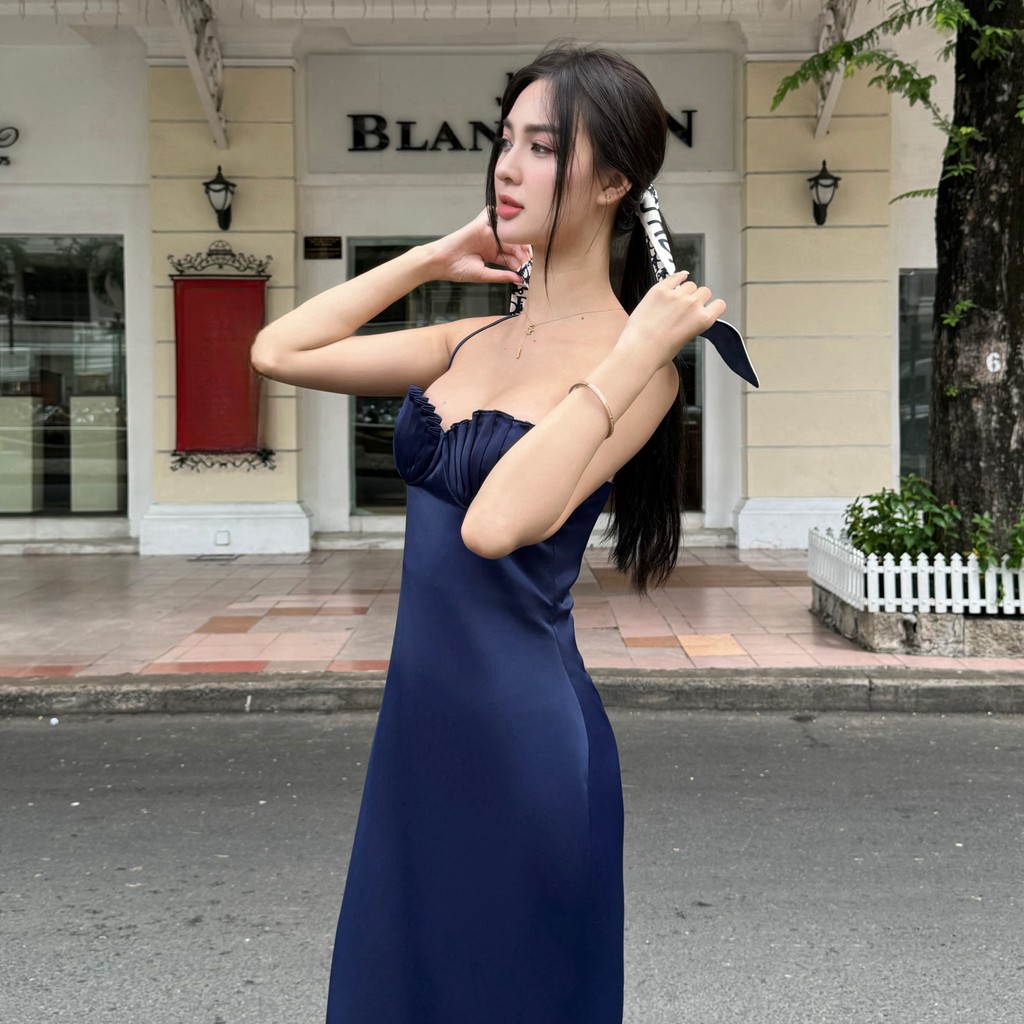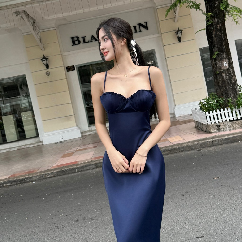 [LUASTUDIOS] Váy lụa 2 dây cúp ngực sò đẹp màu xanh navy sang đi tiệc nữ