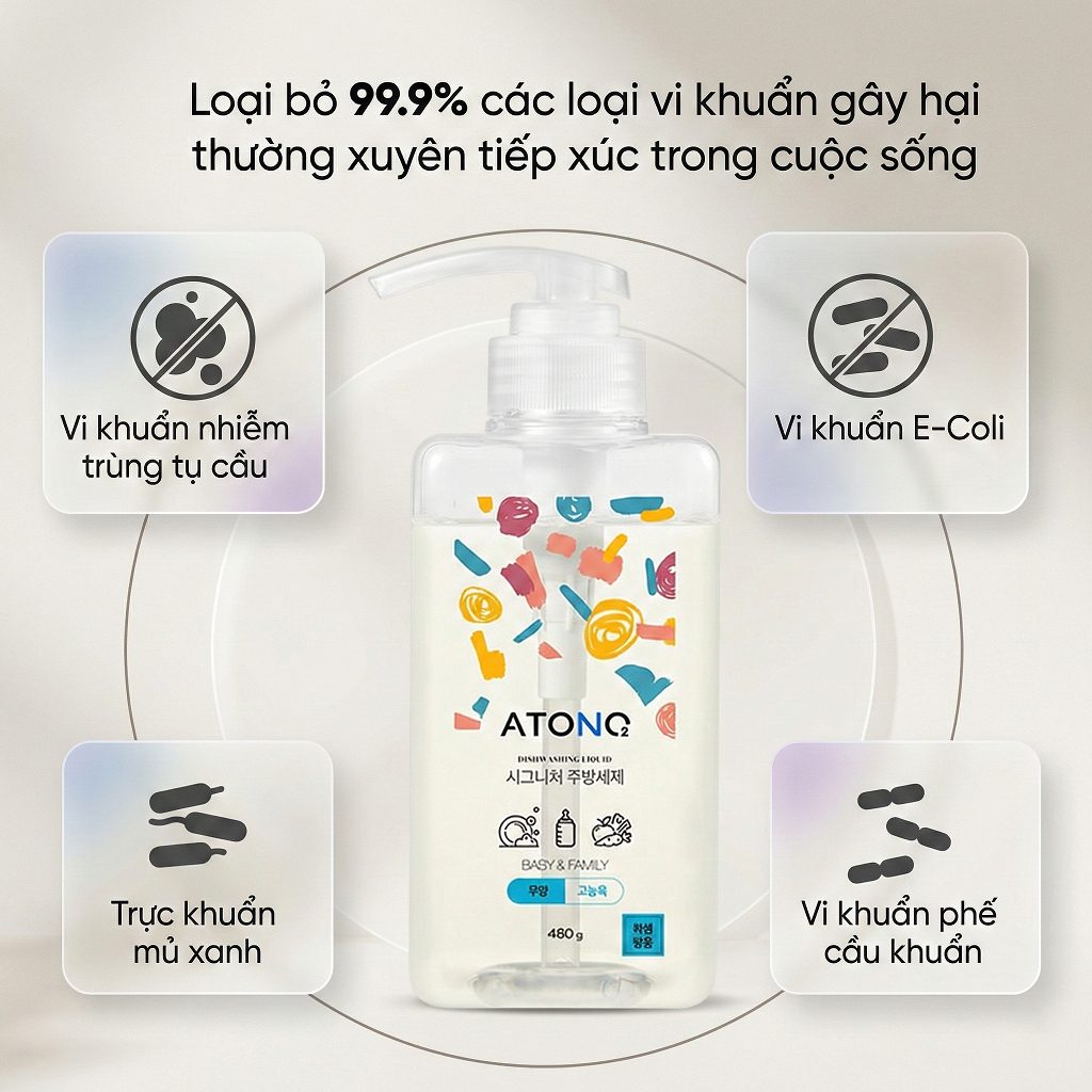 Nước rửa bình sữa & chén bát đậm đặc thuần chay, an toàn, có thể rửa được rau củ quả, Thương hiệu Atono2 Hàn Quốc