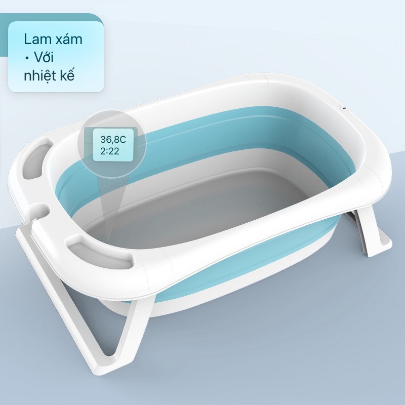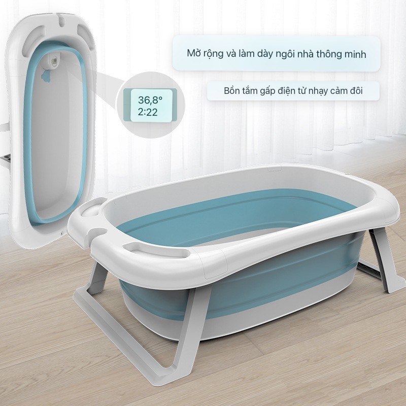 Bồn tắm gấp gọn, chậu tắm gấp gọn cho bé sơ sinh và bé nhỏ có nhiệt kế tiện lợi thiết kế nhỏ gọn tiện lợi an toàn cho bé