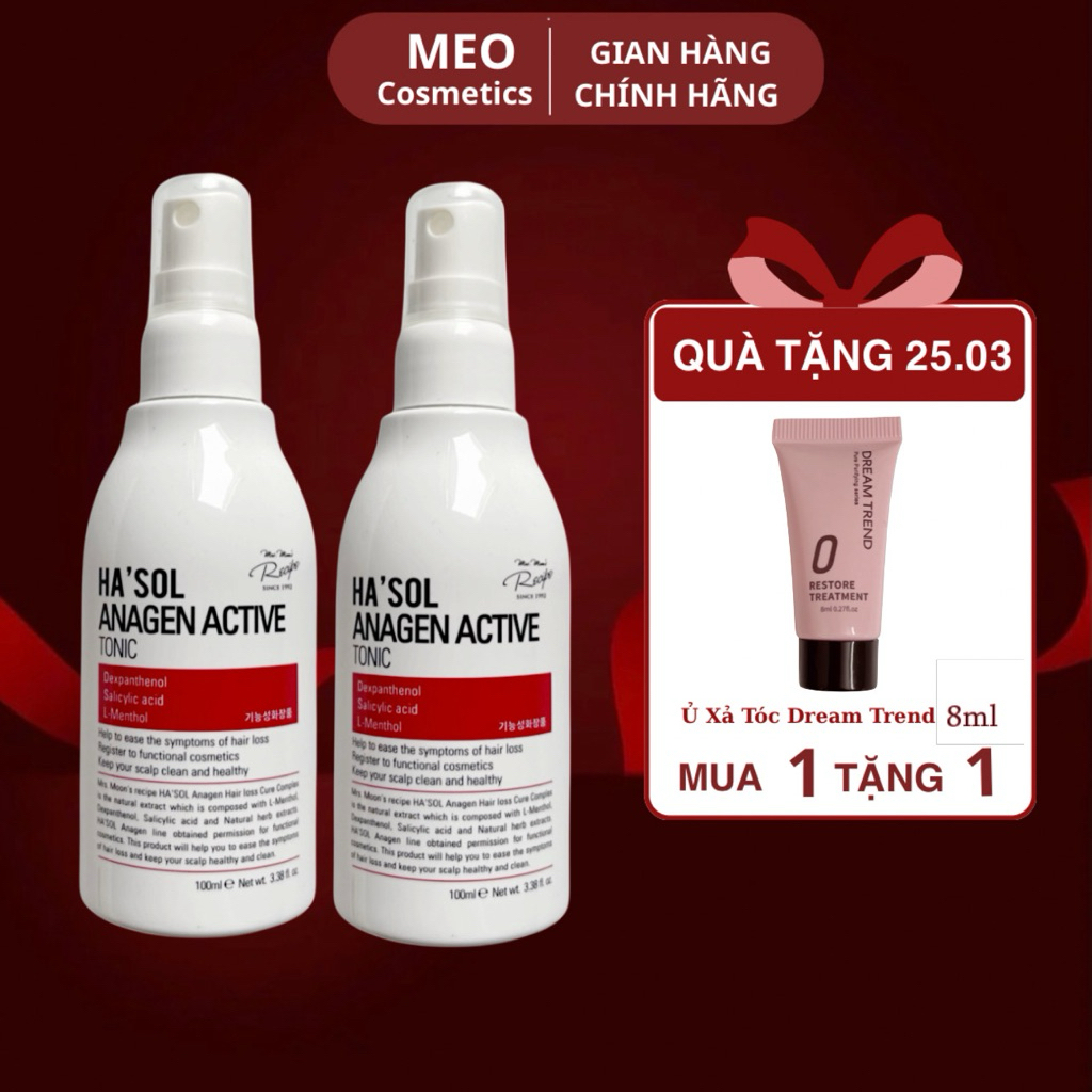 COMBO 2 Xịt dưỡng tóc, chăm da đầu, hỗ trợ tóc chắc khỏe Ha'sol Anagen Active Tonic 100ml