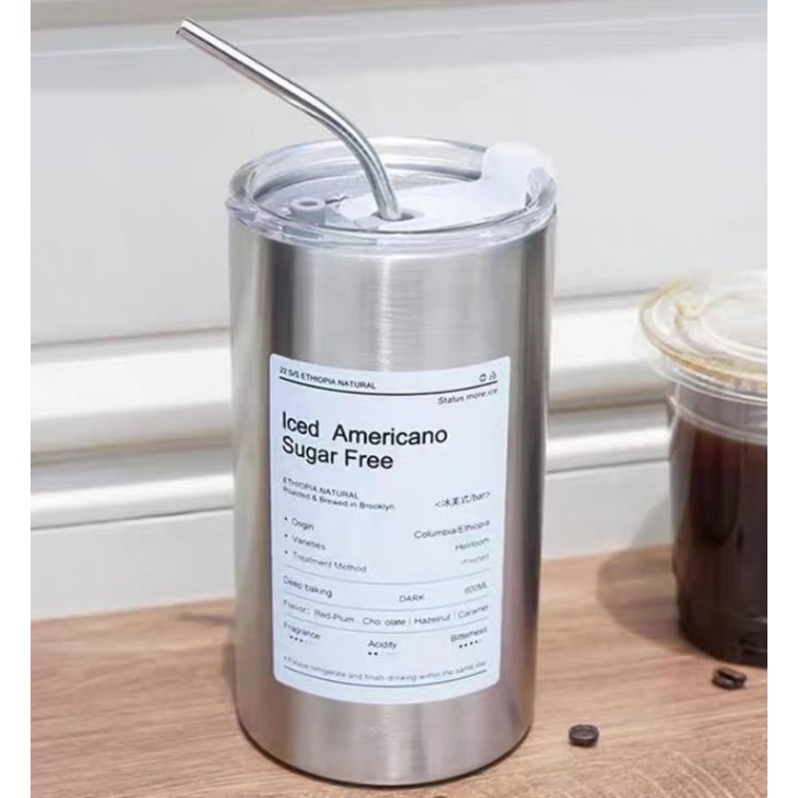 Cốc Uống Nước,Ly giữ nhiệt Inox Dung Tích 600ml có nắp chống tràn,Uống Coffee Hiệu Suất 6-8 Tiếng kèm ống hút