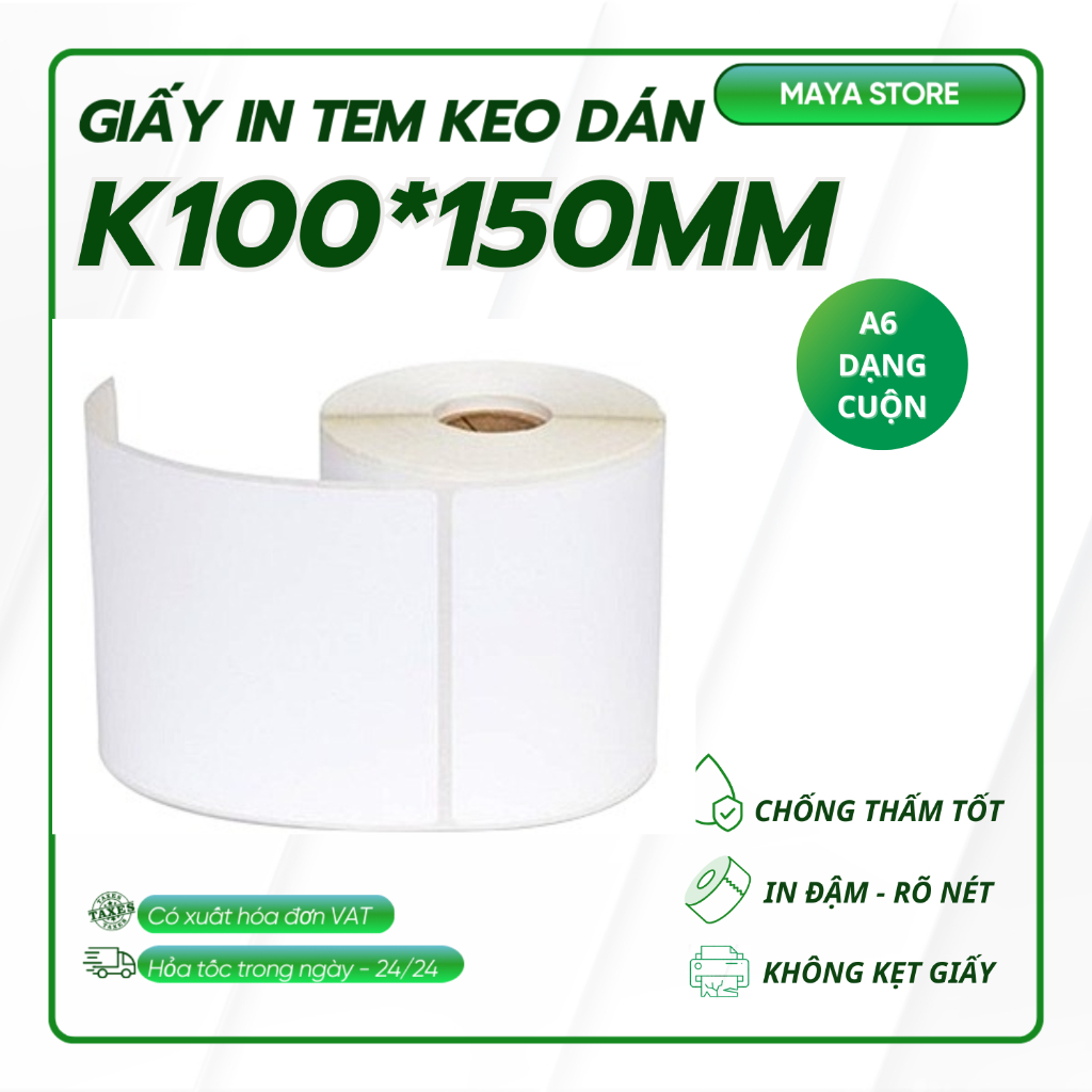 Giấy in nhiệt A6 100x150mm cuộn 350 tờ,tệp 100x150mm 500 tờ Giấy in nhiệt tự dính dùng cho in mã vận đơn hàng shopee.