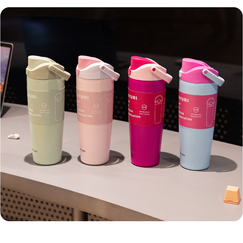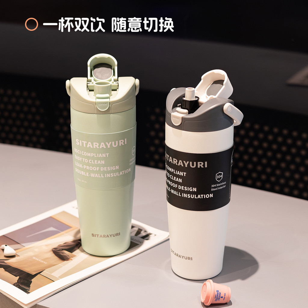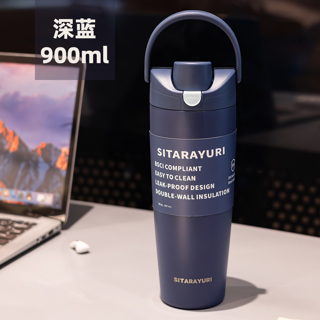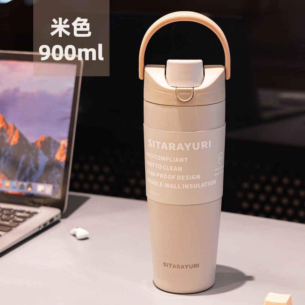 【LUCKY】SITARAYURI Cốc giữ nhiệt Thép không gỉ 304 Bình nước giữ nhiệt ô tô dung tích lớn có ống hút làm mát 900ml